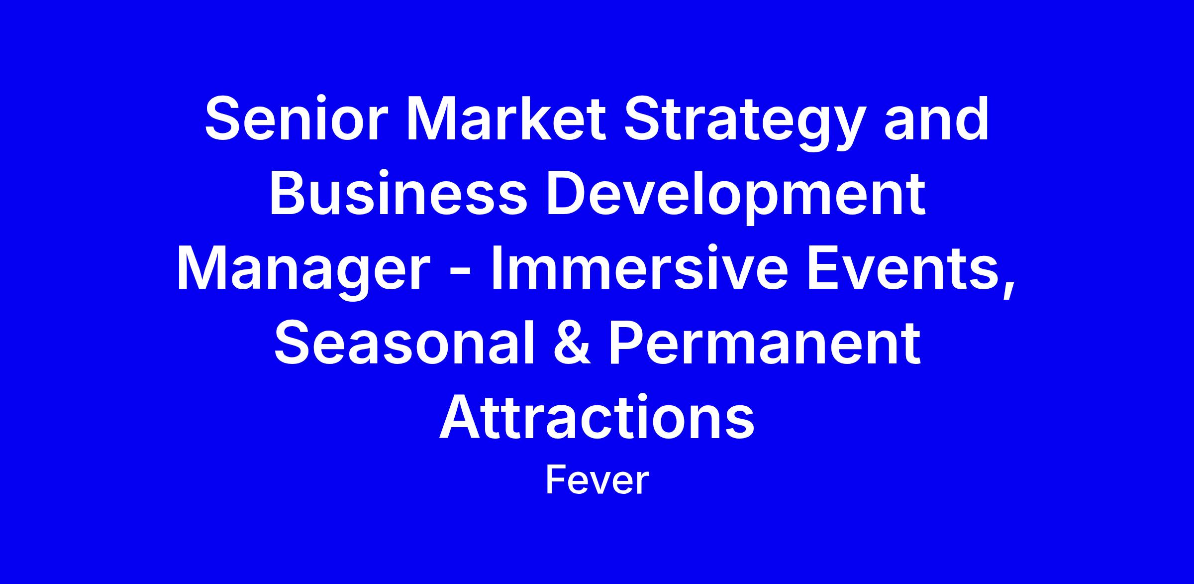Fever is seeking a Senior Market Strategy and Business Development Manager to build deep partnerships with immersive touring, seasonal and permanent attractions, drive a scalable growth strategy for the US and beyond, and manage a large client base with strong commercial outcomes. The ideal candidate has 8+ years in immersive or creative sectors, a proven sales track record in a quota role, superb partnership management, and a data driven approach to prioritization, with excellent English communication and proficiency in Salesforce or similar CRM. This onsite NYC role offers a base 100k–125k plus potential bonuses, stock options, health and 401k, generous discounts, and one remote day per week. To apply, tailor your resume and cover note to show measurable wins, emphasize cross functional collaboration, industry insight, and why Fever’s platform excites you, plus demonstrate comfort with a fast moving startup culture and the global scale of Fever's mission.