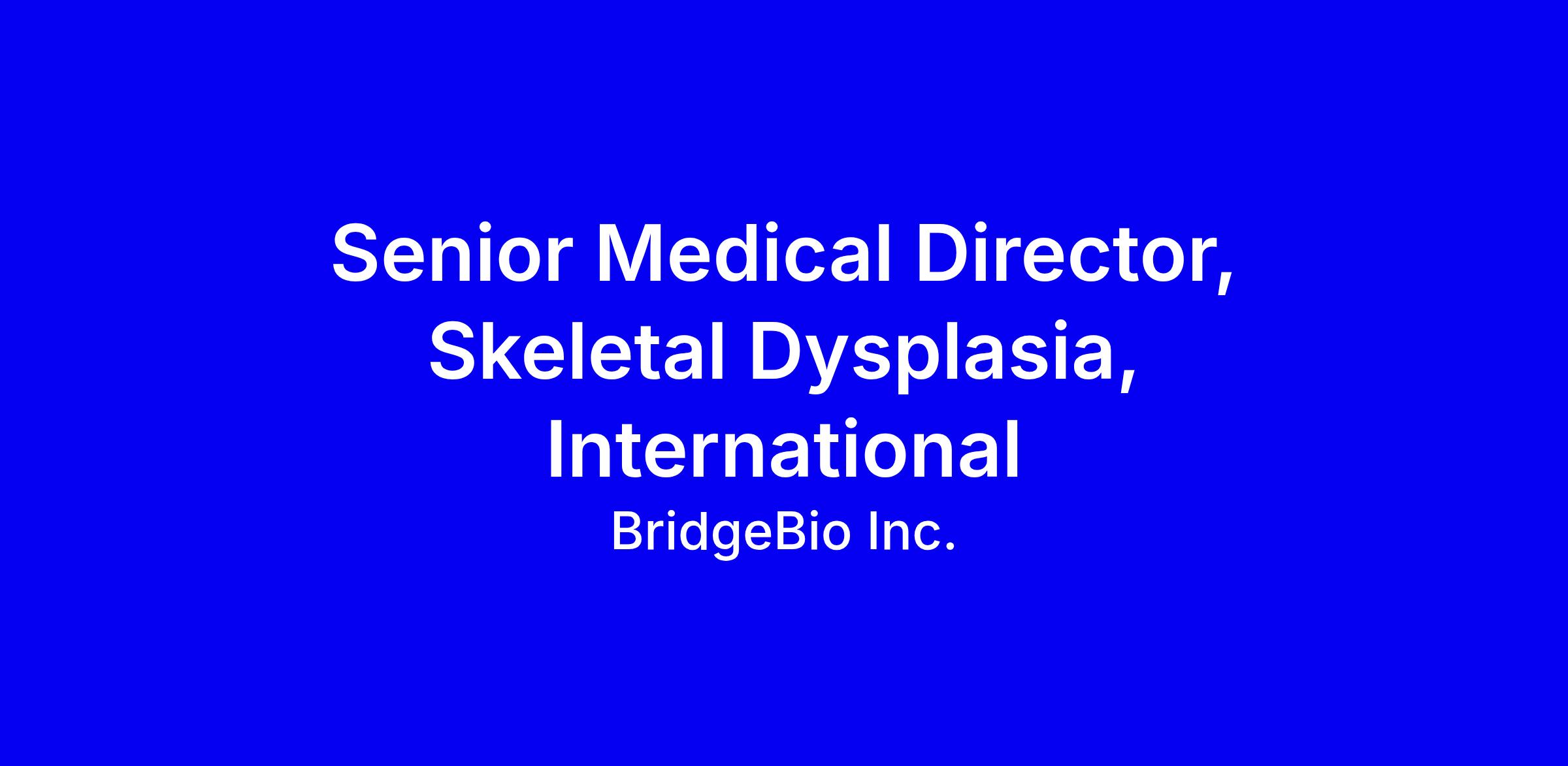 As Senior Medical Director International for Skeletal Dysplasia, you will play a pivotal role in advancing BridgeBio’s Skeletal Dysplasia pipeline across Europe. You will operate at the scientific forefront of rare disease innovation, translating cutting-edge science into impactful medical strategies that support successful launches and long-term patient benefit.