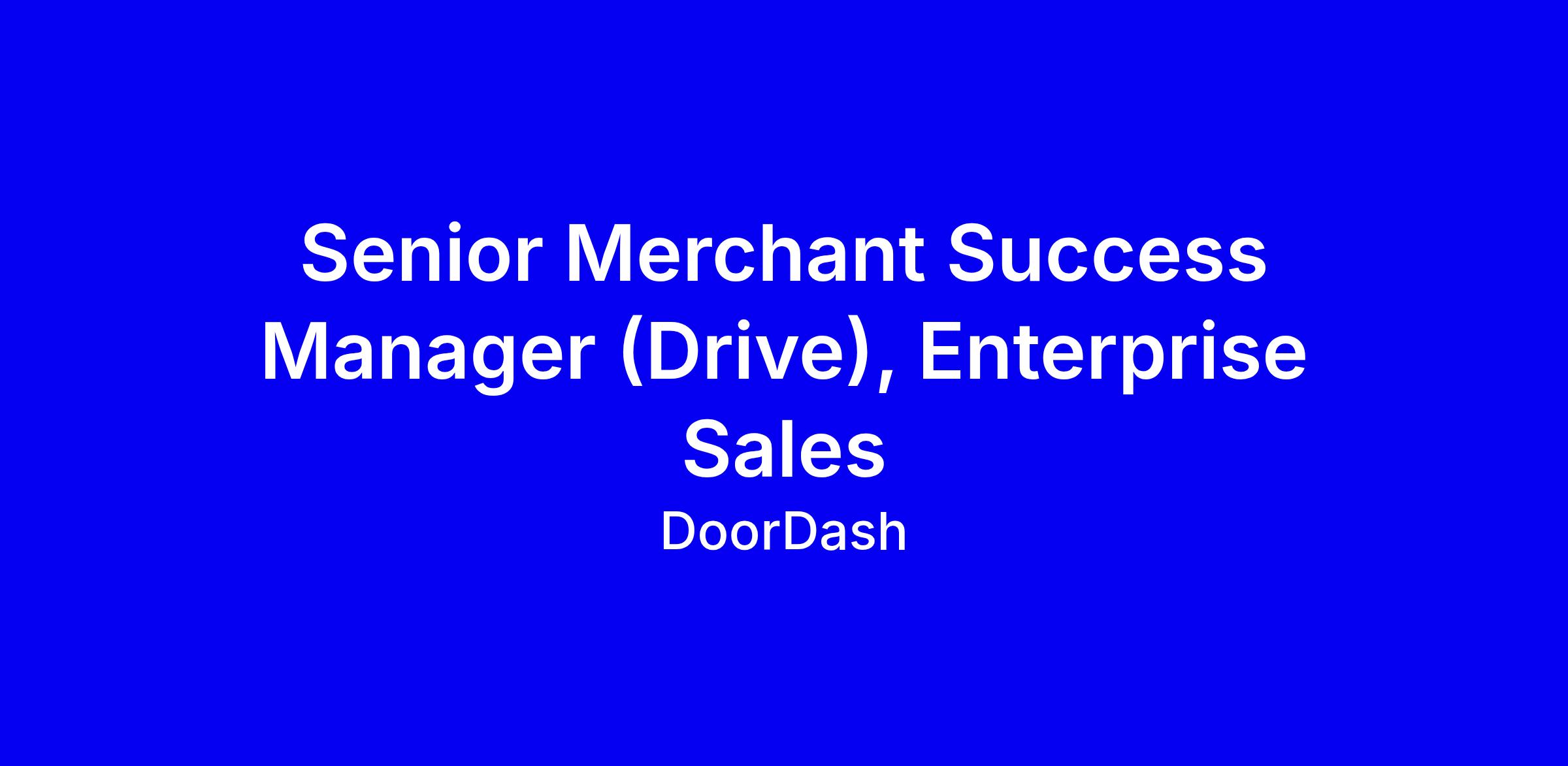 DoorDash is hiring a Senior Merchant Success Manager for Drive on the Enterprise Sales team to shape growth plans and run day-to-day for a portfolio of Franchise Groups and Brands. You’ll combine data analysis, operational insight and relationship management to expand Drive adoption, drive profitability, and co-create solutions with franchise leaders; you’ll own business reviews with C‑suite and ops teams and work cross‑functionally to inform product roadmaps. The ideal candidate has 3–5+ years in consulting, client success, account management or sales, excellent communication, and a bias for action; nice‑to‑haves include startup or marketplace experience and proficiency with Sigma/Tableau/Excel and Salesforce. Apply soon; deadline around 3/31/2026.