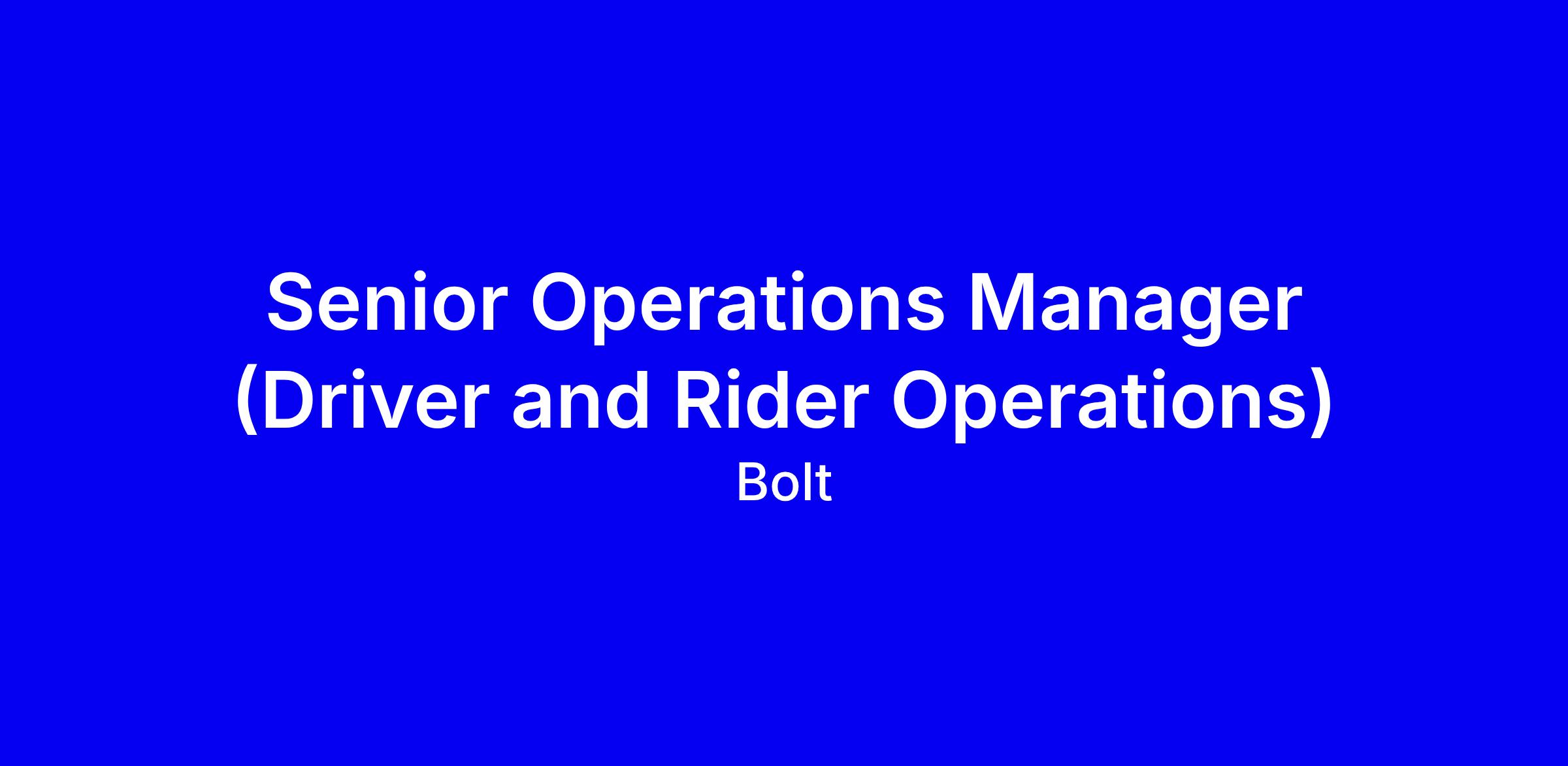Bolt is seeking a Senior Operations Manager to own the UKI Rider and Driver flywheel from acquisition to engagement, loyalty and growth, leading a 20 person team in Bolt’s market. This role blends strategy, performance and operations, requiring 8+ years in operations and strategy, plus proven stakeholder influence. You will own KPIs such as growth, quality and engagement, drive structured experimentation, remove inefficiencies and partner with Product, Marketing and Central Operations on GTM plans. To apply, tailor your CV to show measurable impact, ROI mindset, cross functional leadership and comfort operating in ambiguity. Benefits include hybrid work, stock options and wellness, aligned with Bolt’s mission to build cities for people not cars.