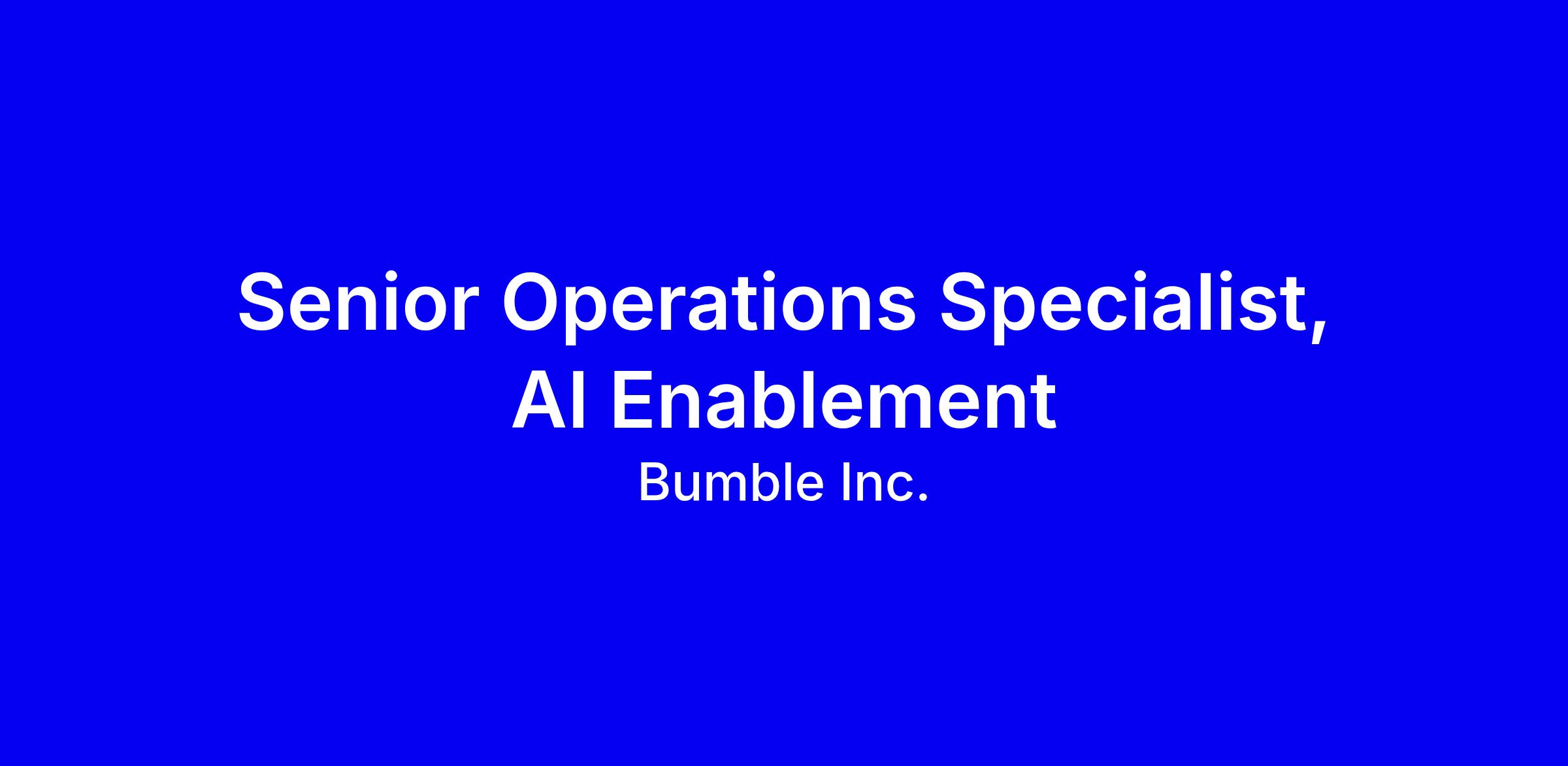 Introduction to the role & teamAt Bumble, our mission is to create a world where relationships are healthy and equitable — built on kindness, respect, and genuine connection. The CX & Trust team brings that mission to life by ensuring every experience on our platform is safe, supportive, and trustworthy. As a Senior Operations Specialist — AI Enablement, you’ll lead the end-to-end quality program for AI Moderation. You will ensure that human and machine moderation systems operate with accuracy, consistency, and fairness — while continuously improving quality standards, feedback loops, and regulatory alignment.You’ll join a passionate global team that blends product insight with a deep commitment to people-first design. Together, you’ll help us reimagine how technology — and AI in particular — can enhance trust and care across every user touchpoint.