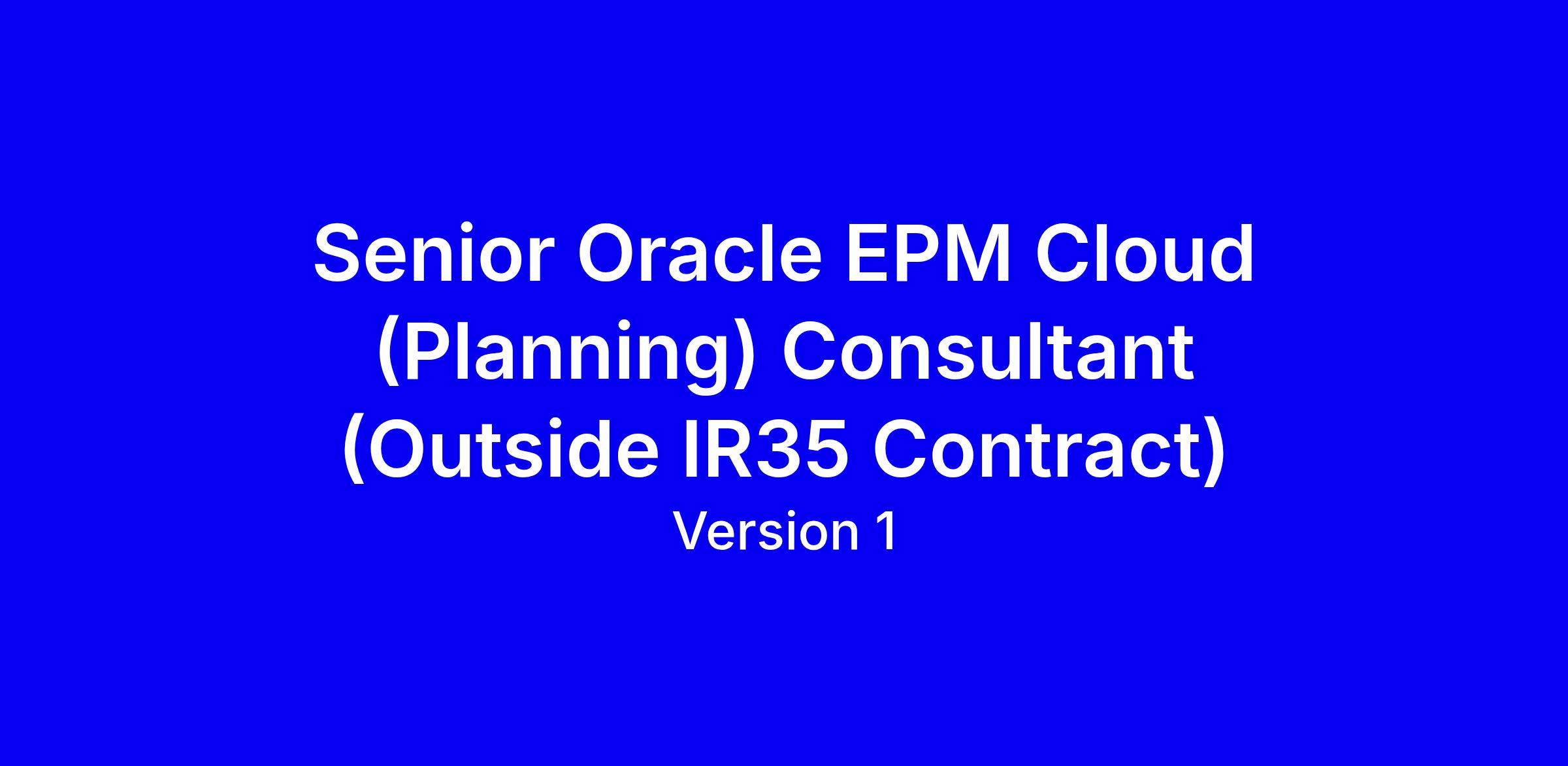 Senior Oracle EPM Cloud (Planning) Functional Consultant (Outside IR35 Contract)