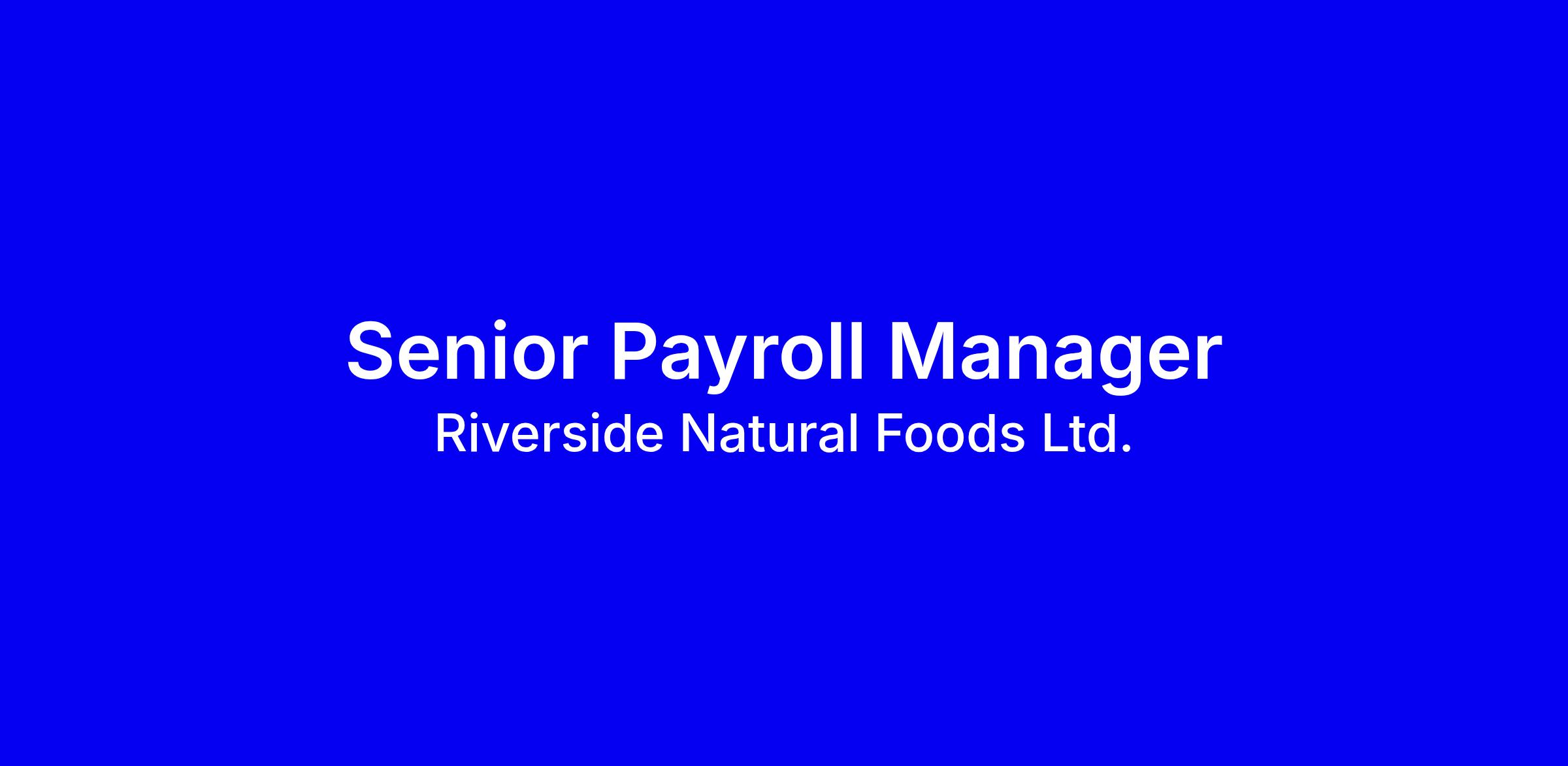 The Senior Payroll Manager is responsible for leading payroll and benefits delivery at Riverside Natural Foods across Canada and the US. This role ensures payroll is processed accurately, on time, and in compliance with all applicable regulations for a diverse employee population.