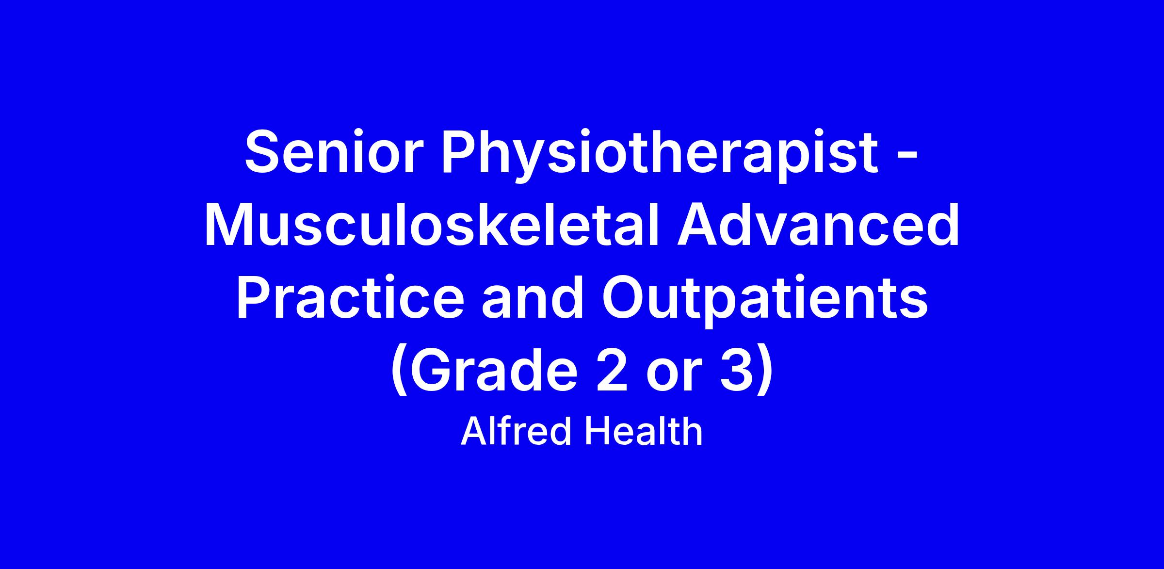 Exciting opportunity for a Grade 2 Senior Physiotherapist or Grade 3 Senior Clinician Physiotherapist in Musculoskeletal Advanced Practice and Outpatients. - Fixed-term until 6/12/2026 (Maternity leave)