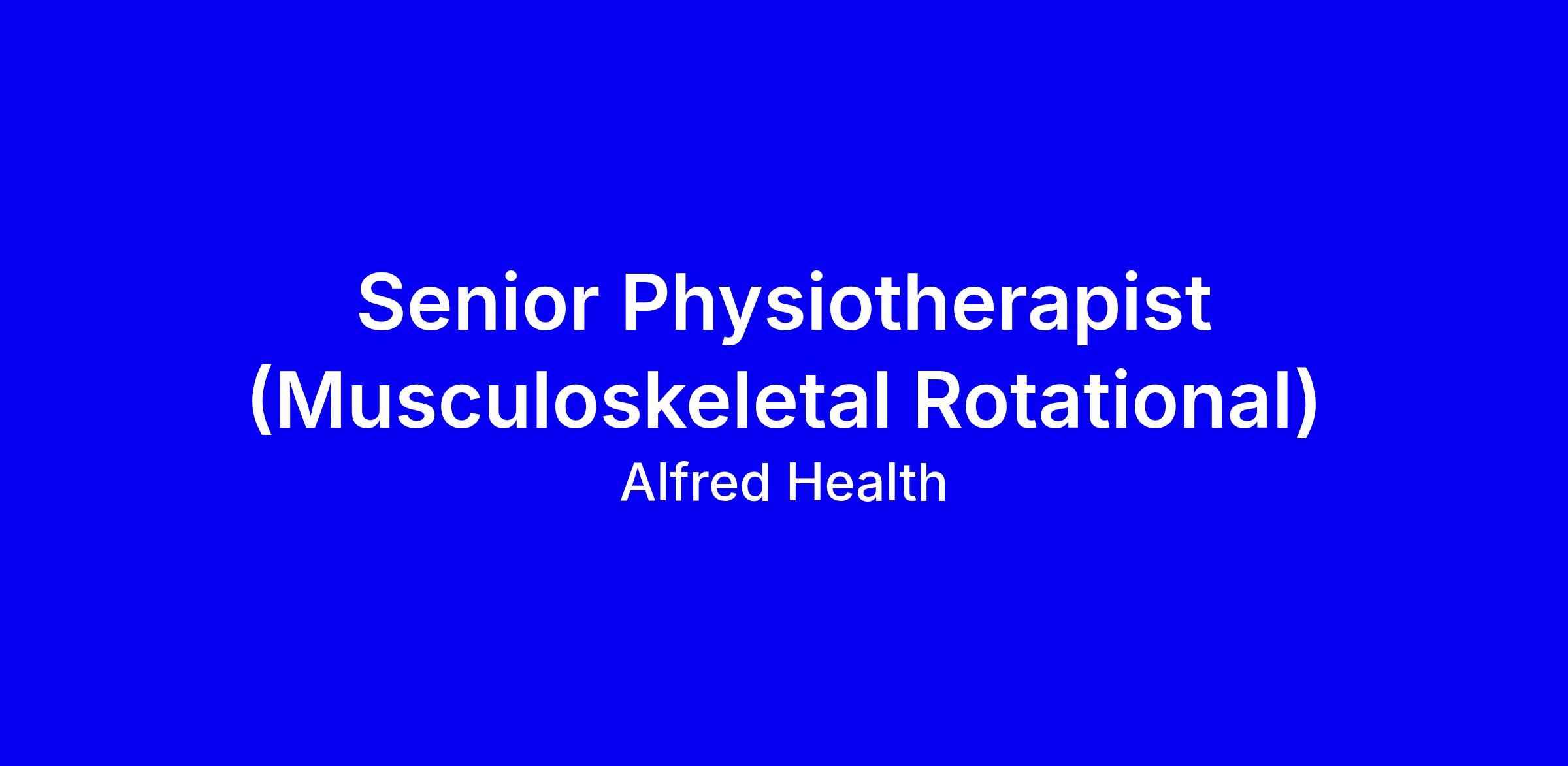 Exciting opportunity for a Senior Physiotherapist to join our Musculoskeletal Stream at Alfred Health.