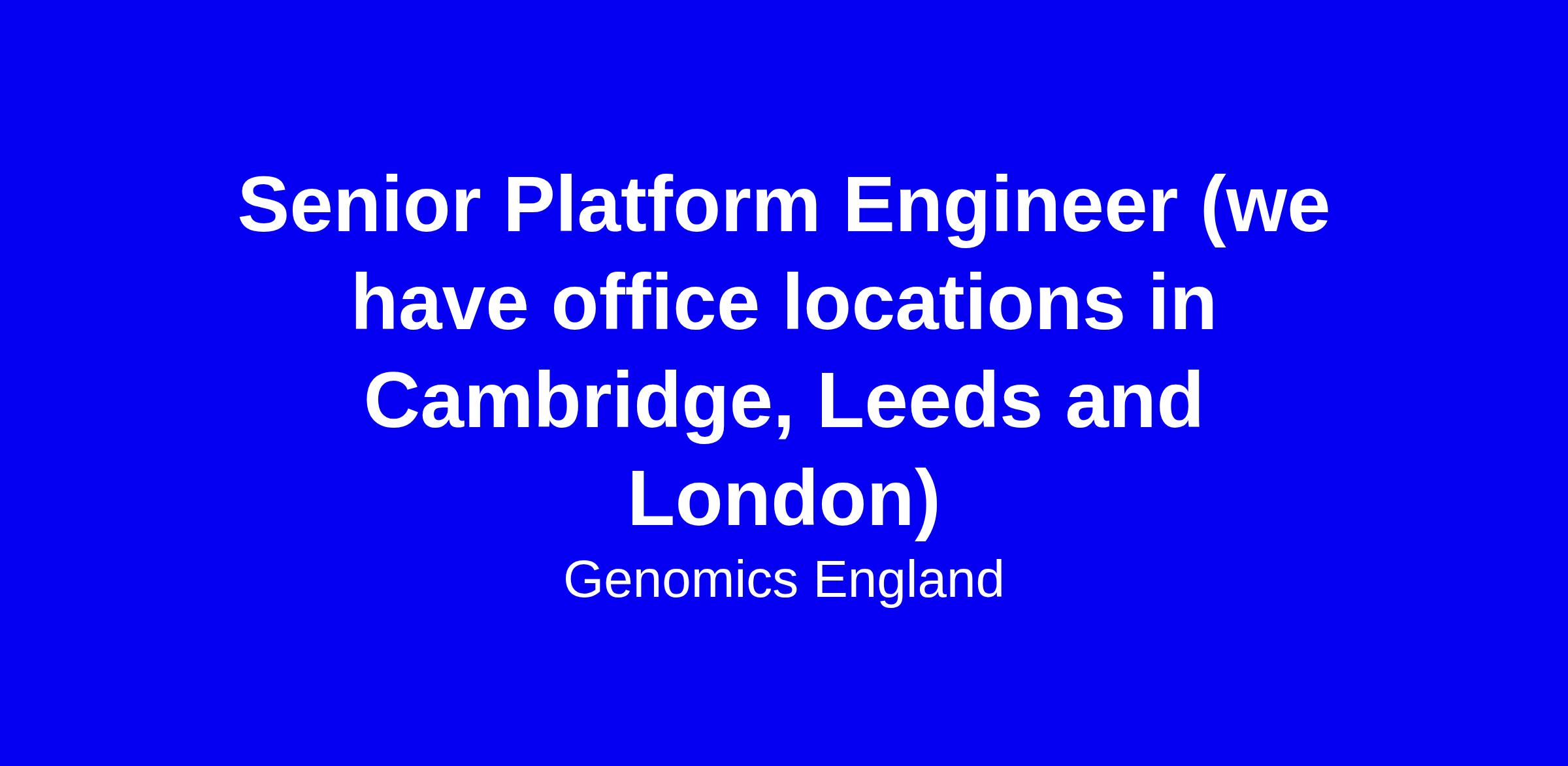 If you have demonstrable experience as a Senior Platform Engineer, and can drive cloud automation, optimise infrastructure, and influence engineering decisions, join us at Genomics England to make a real impact on our technology and the future of genomic healthcare.