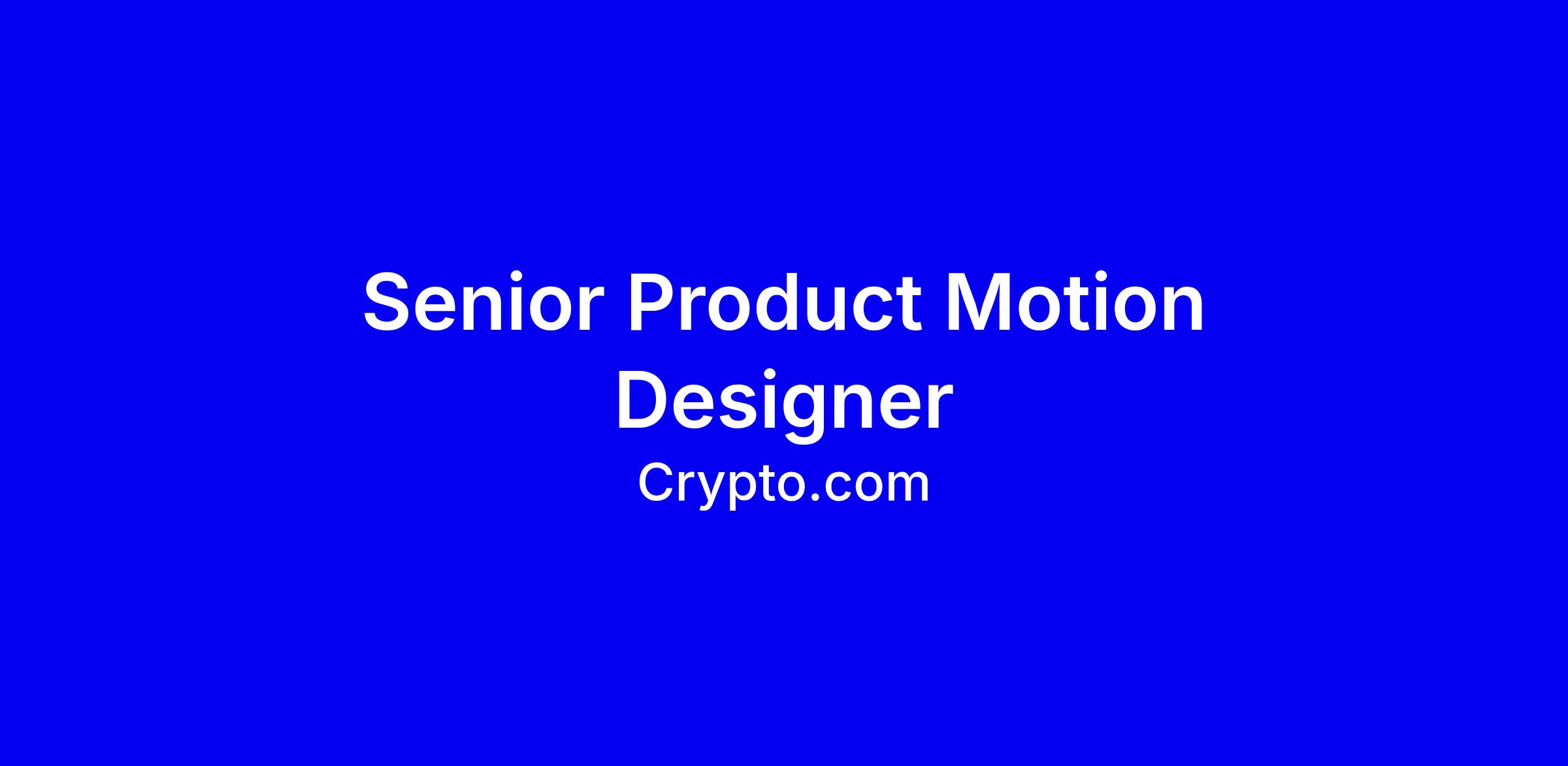About the role: As a Senior Motion Designer you’ll work closely with product designers, graphic designers, and 3D designers to create stunning motion and imagery used across Crypto.com products and web surfaces. As part of a small visual team, you’ll have tremendous influence on the visual identity of services used by millions of people around the world.You work with ambiguity and can turn abstract ideas into concepts and creative and tangible deliverables. You work with a high level of craft and attention to detail, while connecting your work to a broader vision. Your passion for the arts and design is shared through inspiration and your work, elevating the team's visual proficiency and vice-versa.