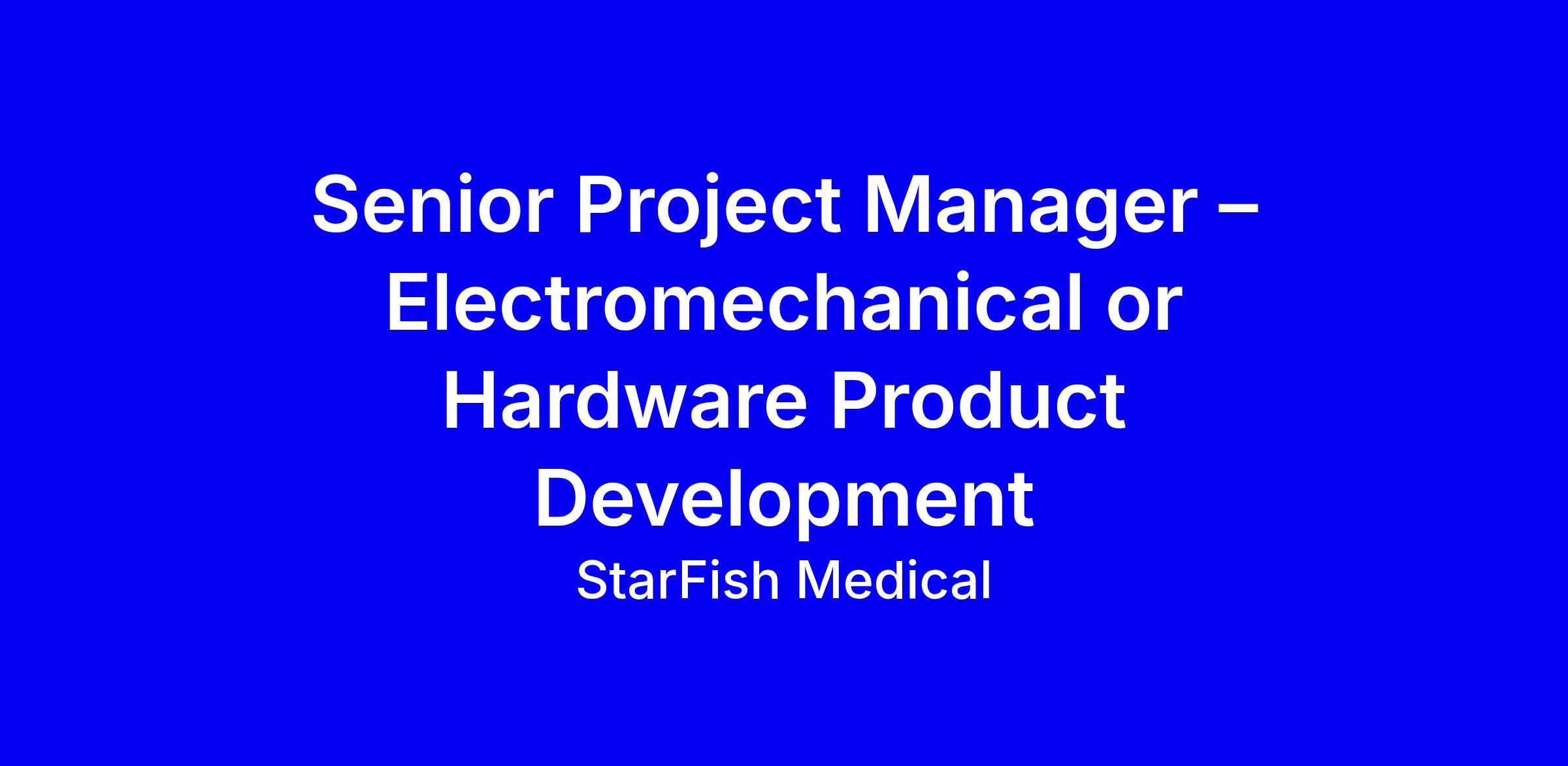 StarFish Medical is seeking an experienced Senior Project Manager to lead complex electromechanical product development projects from concept to manufacturing.