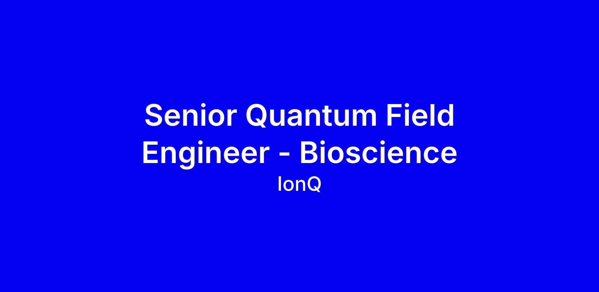 We are looking for a Senior Quantum Field Engineer. As a Senior Quantum Field Engineer, you’ll be part of a team whose mission is to lead IonQ on its journey to build the world’s best quantum solutions for the Bioscience vertical and solve the world’s most complex problems. Field Engineering sits at the intersection of customers, markets, products and product teams, algorithms, applications, innovation and strategy - this is the team where ideas become applied and have impact.