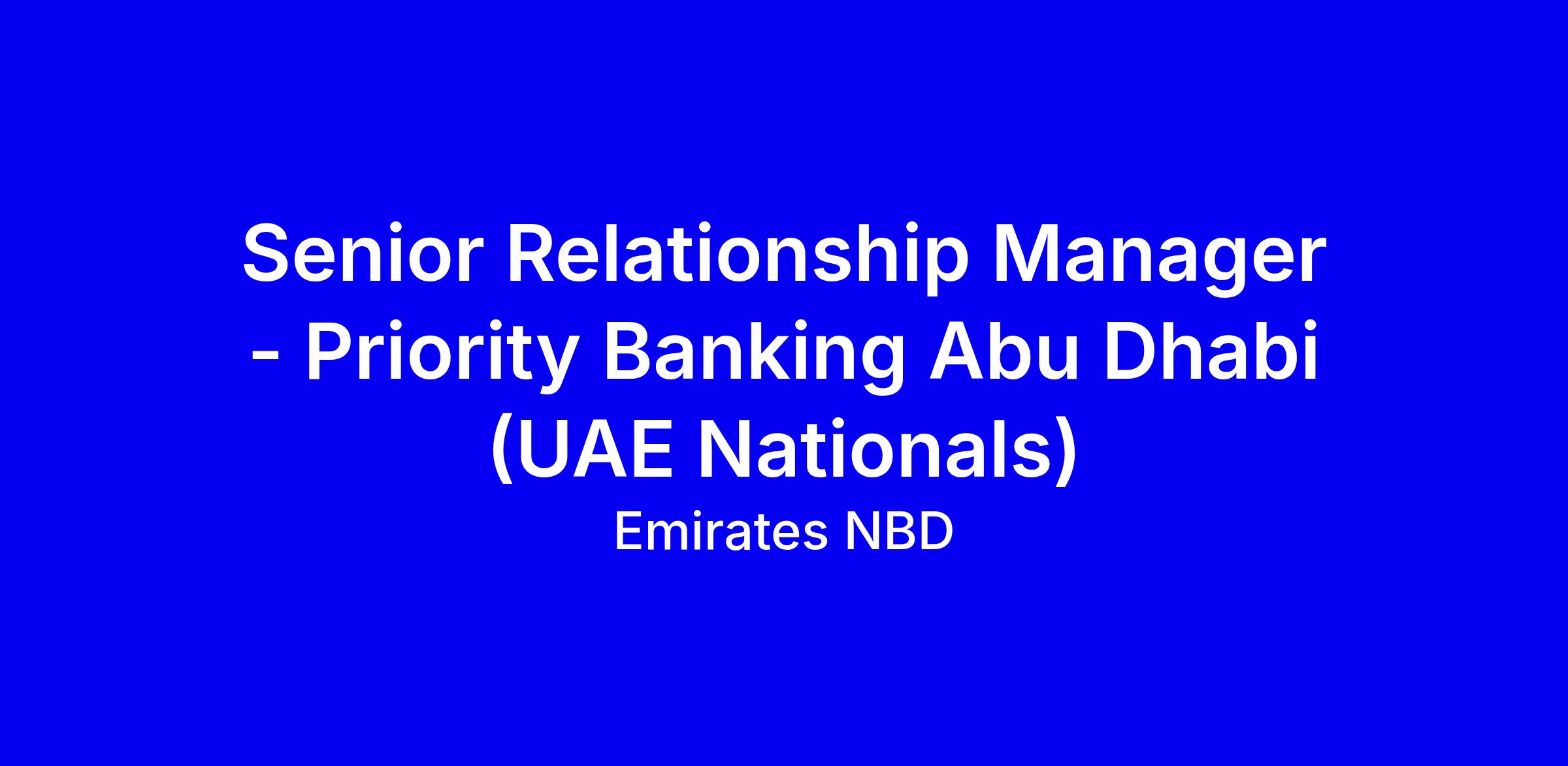 Emirates NBD seeks a Senior Relationship Manager for Priority Banking in Abu Dhabi, targeting UAE Nationals, to be the main contact for PRB clients and to leverage CSRs for basic transactions while driving client acquisition, retention and cross selling. You will develop and manage relationships, onboard New to Bank customers, and act as a trusted advisor across Priority Banking products, including lending, wealth and advisory services, with strict KYC AML and confidentiality. Coordinate with Product Specialists for specialized guidance and maintain compliance with risk policies. To apply, quantify wins in wallet share and onboarding efficiency, tailor your CV to UAE market experience, demonstrate consultative selling, and show strong communication and presentation skills.