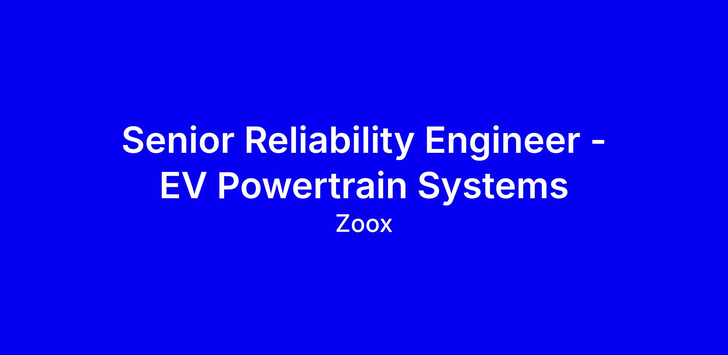 Zoox seeks a Senior Reliability Engineer for EV powertrain in Foster City, onsite. You will set reliability targets for EDU, HVB and HV harnesses, lead DFMEA, translate risk insights into validation plans, define a PHM strategy, and drive field reliability initiatives across design, validation and operations while collaborating with suppliers and cross-functional teams to bake durability into architecture. A Master’s degree and 10+ years in reliability, deep EV EDU/HVB knowledge, strong data analysis and risk assessment skills, and a first principles mindset with leadership are required. Bonus: CRE, ISO 26262 familiarity, SQL/Python. To apply, quantify impact and DFMEA/PHM successes, show leadership, and demonstrate startup-ready collaboration.