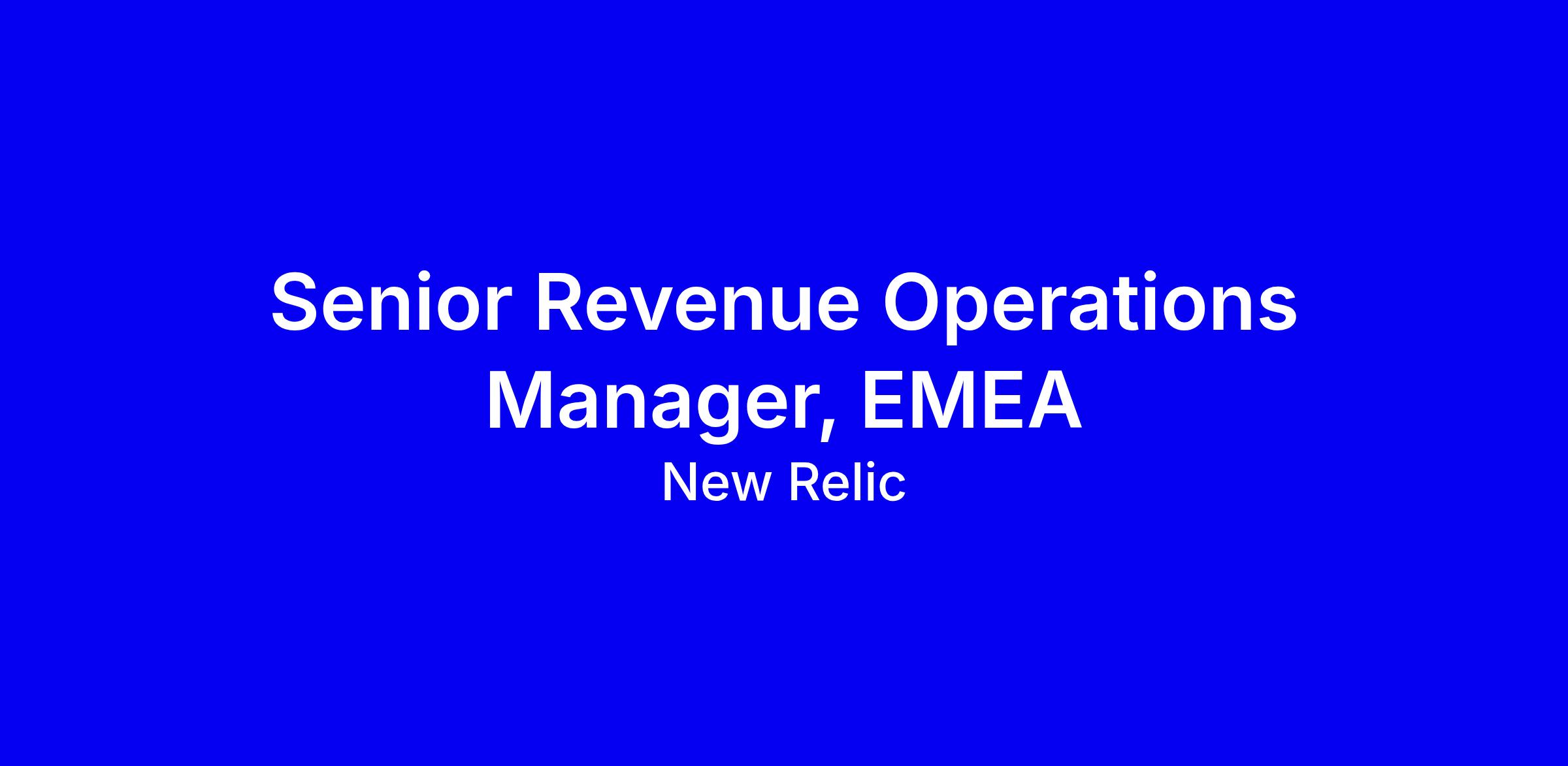 New Relic is seeking a Senior Revenue Operations Manager for EMEA to partner with the Strategic and Enterprise sales leaders, support a go-to-market team of about eighty, and elevate forecasting, governance and sales productivity across Europe, the Middle East and Africa. You’ll own the strategic forecasting cadence for Strategic and Enterprise units, conduct deep pipeline analyses, lead quarterly business reviews, and advise on large deal structures with Legal, Finance and Deal Desk. You’ll standardize CRM processes, deliver data-driven insights on churn, expansion and consumption, and architect models tracking LAER, NRR and international quotas. Ideal candidates bring extensive SaaS ops experience with a $200M+ book, strong data storytelling, and Salesforce Tableau proficiency; CFA/CPA or a quantitative degree and European language skills are a bonus. Hybrid London; visa notes apply; apply by tailoring your resume to show measurable wins, showcase enterprise dashboards, and align with Observability. Email [email protected].
