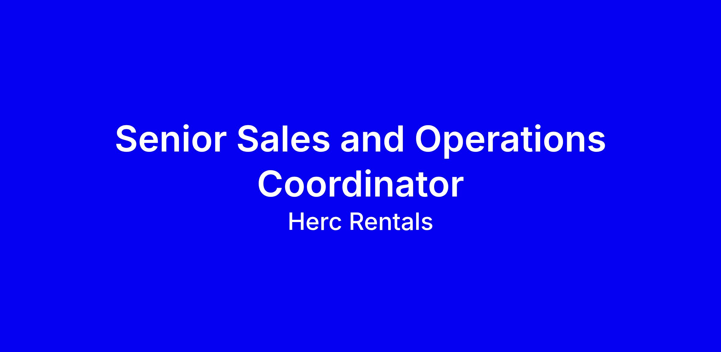 The Senior Sales and Operations Coordinator is the first person you see when you walk into a Herc Rentals branch or dial a Herc Rentals phone number. The ideal person for this role is energetic, eager to help, and hungry to learn and grow their career.