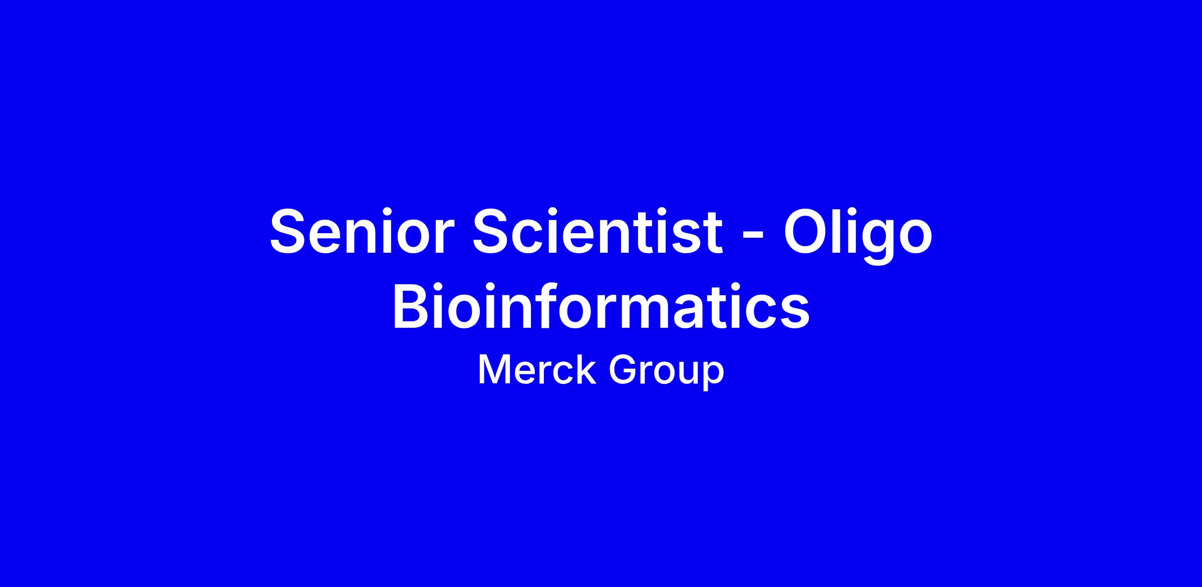 EMD Serono in Billerica, MA is seeking a Senior Scientist – Oligo Bioinformatics to add to their Oligonucleotide Therapeutics Group (DDTech).