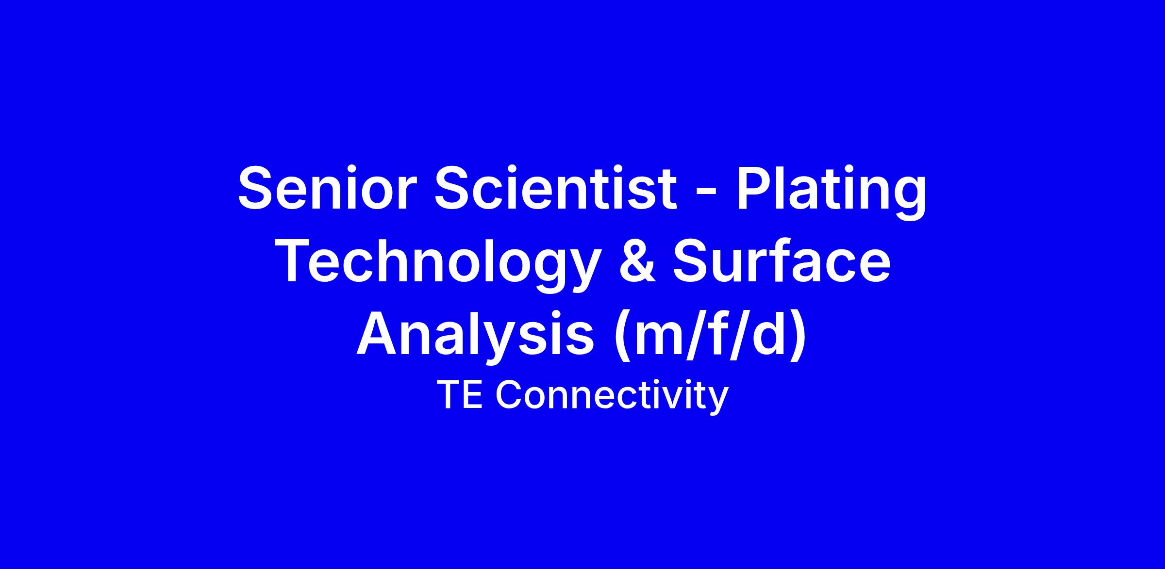 TE Connectivity is seeking a highly skilled Senior Scientist - Plating Technology & Surface Analysis (m/f/d) to join our Materials Engineering team, focusing on advanced plating processes, precious metal deposition mechanisms, and surface analysis techniques. This role will support our mission to develop innovative connector solutions through cutting-edge materials science and electrochemical processes.
