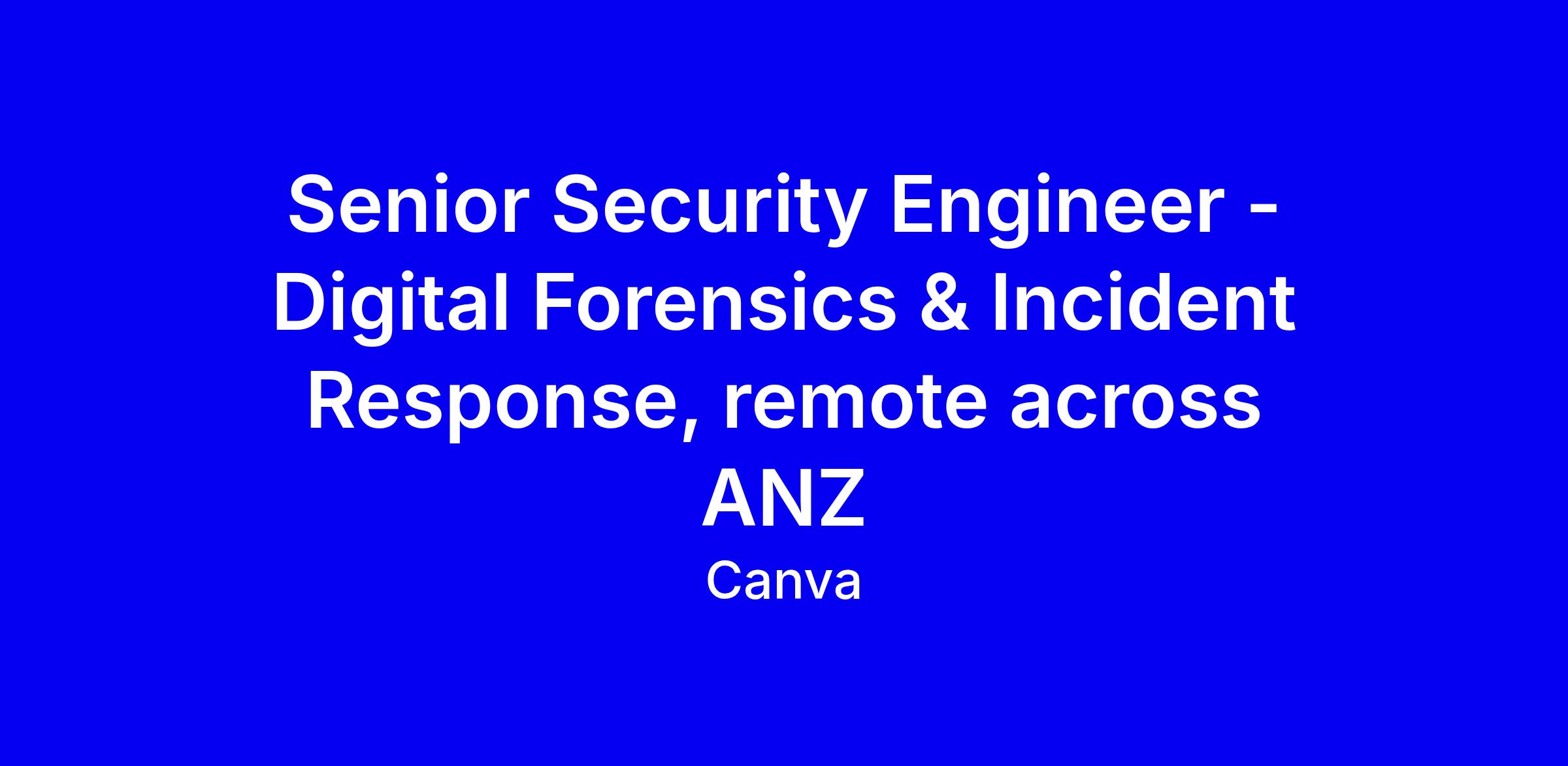 We are seeking an experienced DFIR practitioner to join the team as a Senior Security Engineer. In addition to hands-on incident response and forensic investigation, you will play a pivotal role in shaping the future of Canva’s DFIR capability. You’ll bring deep technical investigation experience, strong incident coordination skills, and a mindset focused on building scalable, repeatable response practices. You’ll also help foster a culture where we work with empathy, humility, and generosity - especially when the pressure is on.