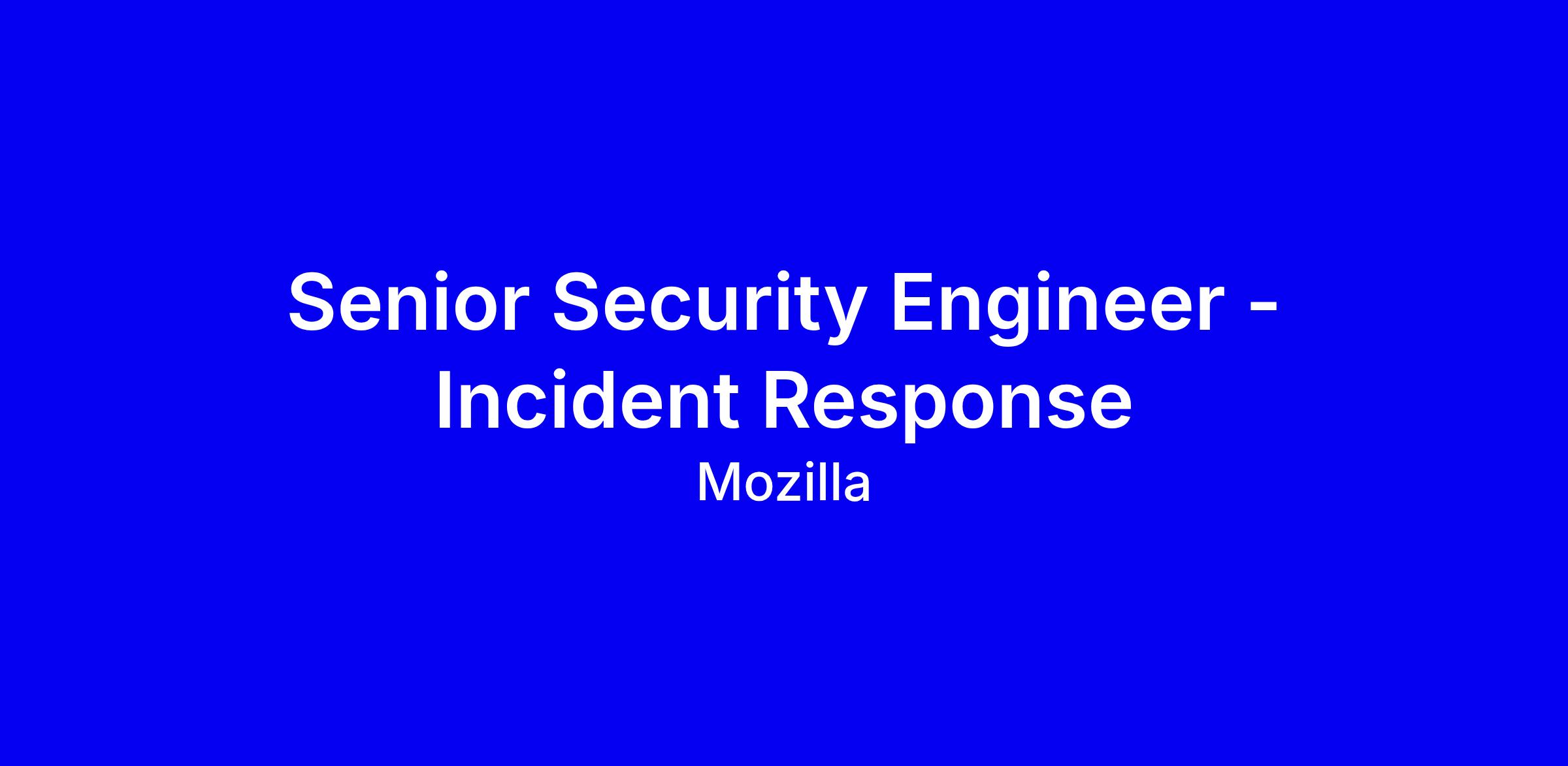 Mozilla is hiring a Senior Security Engineer for Incident Response to monitor and mitigate attacks on Mozilla’s products worldwide, acting as incident commander and driving the full response lifecycle. You’ll design and maintain a portfolio of security alerts, playbooks and escalation workflows for a high performing 24/7 capability, conduct threat hunting, and collaborate with diverse stakeholders to continuously improve preparation, detection, containment and post mortems. Bring 5+ years managing security incidents at scale or in SOC/CSIRT, expert SIEM experience (Splunk preferred), hands on EDR and SOAR, plus cloud know how and superb communication. This remote France role offers €53k to €71k and a strong focus on impact and collaboration.