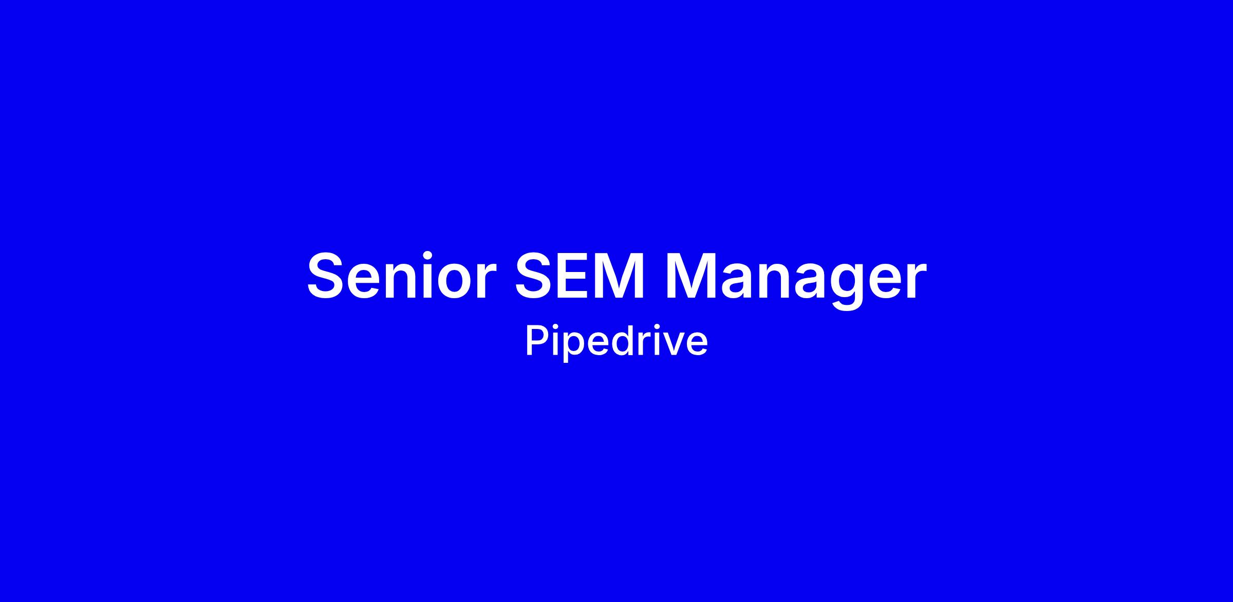 Pipedrive is looking for a Senior SEM Manager to lead our global paid search strategy and performance. This is a critical role responsible for driving measurable growth across Google, Bing, and local search engines. You will partner closely with our agency to ensure high-quality execution and continuous experimentation.Reporting to the Director of Performance Marketing, you will collaborate with Martech, Analytics, Finance, Product, and Sales teams to plan and optimize SEM initiatives that accelerate Pipedrive’s growth. The ideal candidate will combine technical SEM expertise with strong commercial judgment to improve acquisition efficiency, funnel quality, and overall revenue impact.