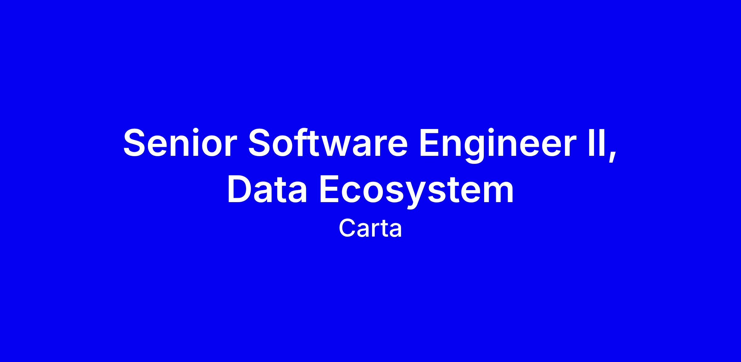 At Carta, our employees set out on a mission to unlock the power of equity ownership for more people in more places. We believe that the problems we solve today unlock the opportunities of tomorrow. As a Senior Software Engineer II, Data Ecosystem you’ll work to: