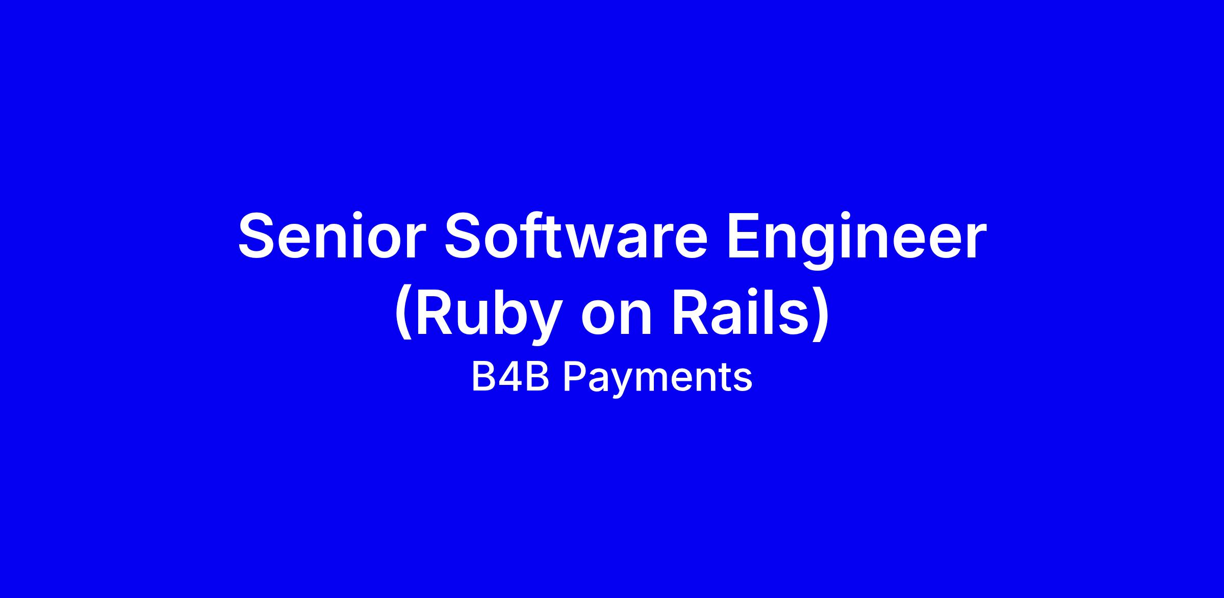 We're looking for a UK based, experienced Software Engineer with a deep knowledge of Ruby on Rails to join our friendly, well organised and product led dev team here at B4B Payments.