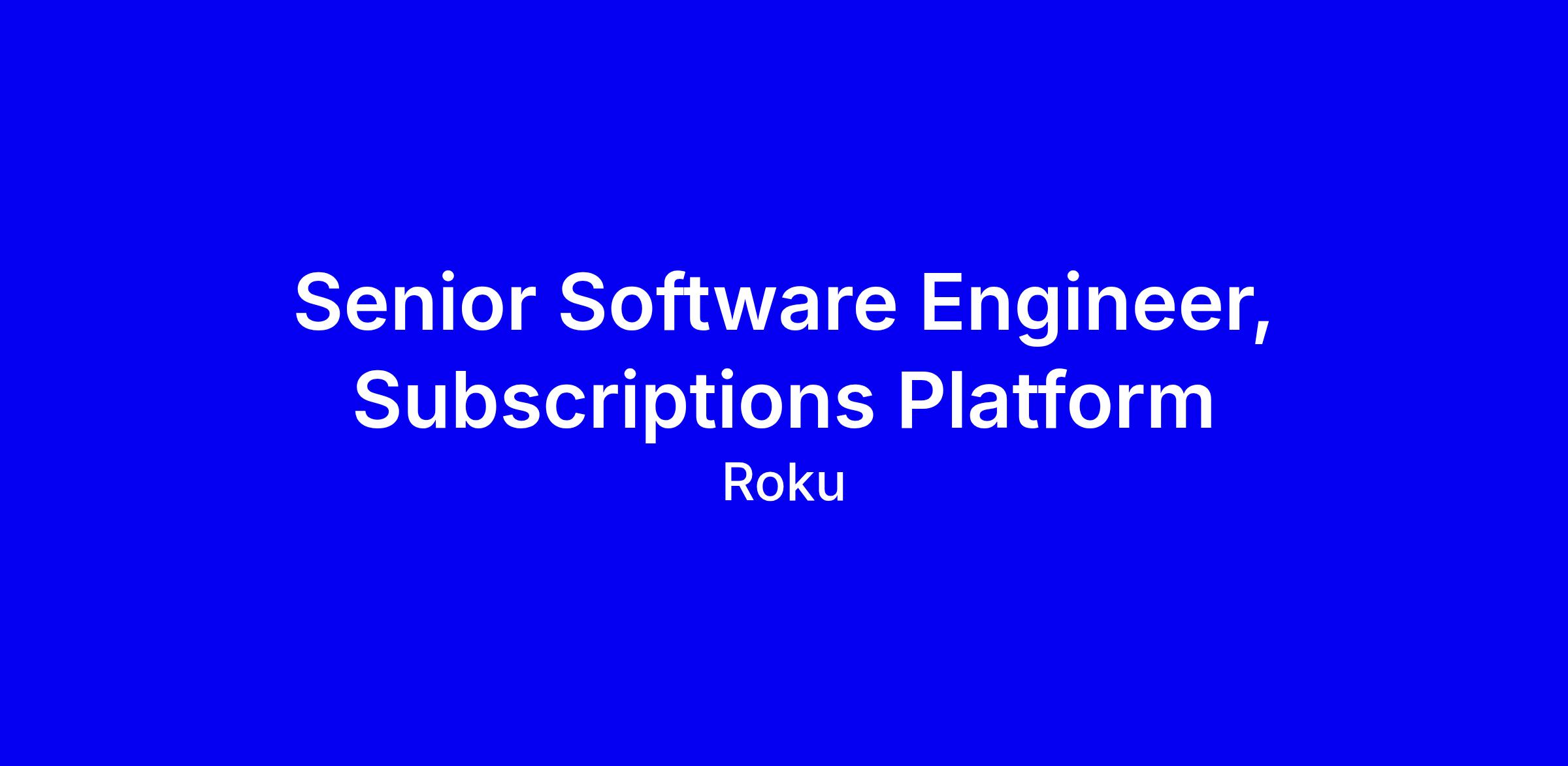 Subscriptions are a key growth area for Roku and are a significant growth path. The subscription platform is part of every step of the customer journey from product placement, purchase, renewals, and viewing experience of digital content on TV and smart home products in domestic and international markets. It also empowers our partners with real-time subscription information, ensuring customers have a smooth purchase and viewing experience. In this role, as part of the subscriptions platform team, you will envision, architect, build, and run a highly available, fault-tolerant, efficient, and performant platform that scales to billions of viewers.