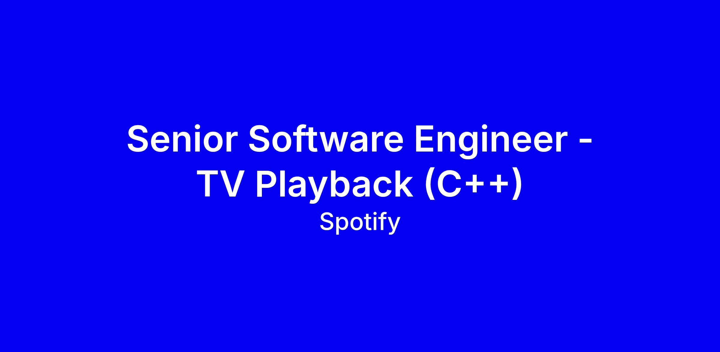 Spotify’s Senior Software Engineer - TV Playback (C++) role on the Native Playback team builds the C++ integration layer powering audio and video on TVs and connects with AVPlayer, ExoPlayer, and other native stacks. You’ll own buffering, ABR, A/V synchronization, track selection, and rendering paths, debug across layers from application logic to OS frameworks, and partner with device teams to ship reliable TV experiences. Expect deep low-level systems work, performance tuning, and a focus on test coverage and observability. In your application, highlight hands-on video playback work, cross-platform integration, profiling or crash analysis, and measurable improvements. Location London or Stockholm, with some remote options and in-person collaboration.