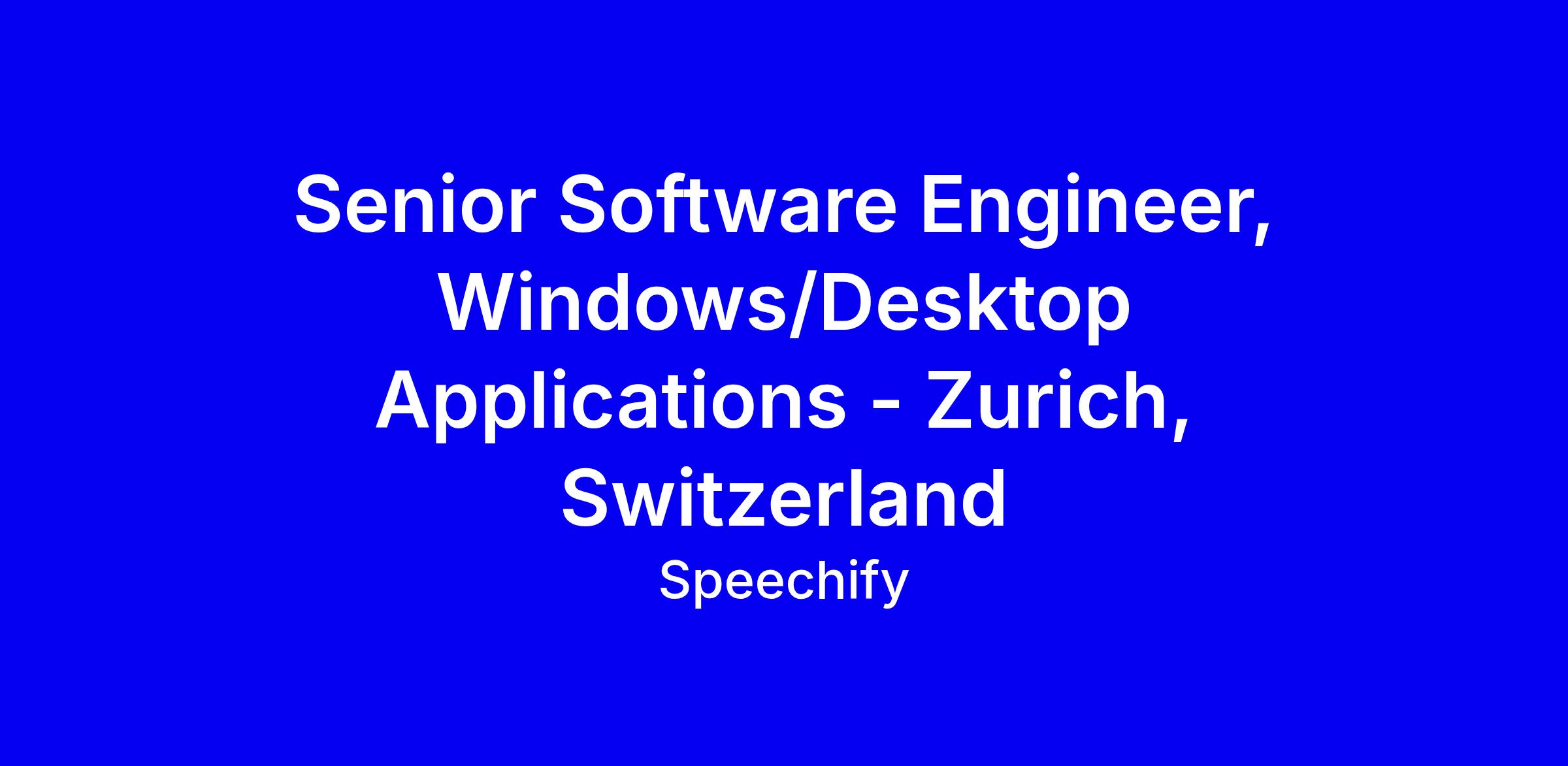 Speechify is seeking a Senior Software Engineer to lead the design, architecture, and development of native Windows desktop applications from Zurich. You’ll own features end to end, drive accessibility, optimize performance and memory usage, and collaborate with product designers, QA, and UX researchers to shape the Windows platform. The ideal candidate has 3+ years creating Windows desktop apps with Windows App SDK, WinUI or similar, C#, XAML, and ideally C++ for native interop; deep .NET and native interop knowledge; a track record of shipping production quality software; and leadership experience. To apply, tailor your resume to emphasize Windows architecture, accessibility work, and include links to your portfolio and LinkedIn.