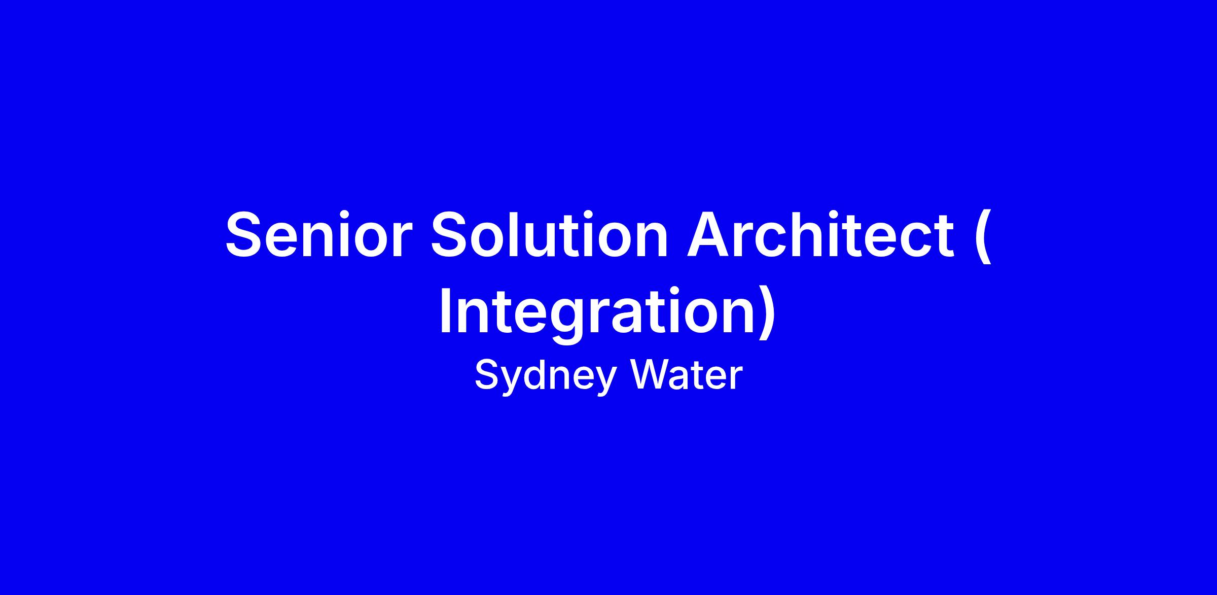 The Senior Integration Solution Architect provides technical leadership and solution delivery across the Digital Business Programs portfolio at Sydney Water. The is responsible for leading the definition, design and governance of integration solution architectures that enable large‑scale, complex business change initiatives. The role is accountable for defining and implementing high‑quality integration solutions are scalable, secure, resilient and aligned with Sydney Water’s Digital Strategy, architecture standards, and agreed design patterns.