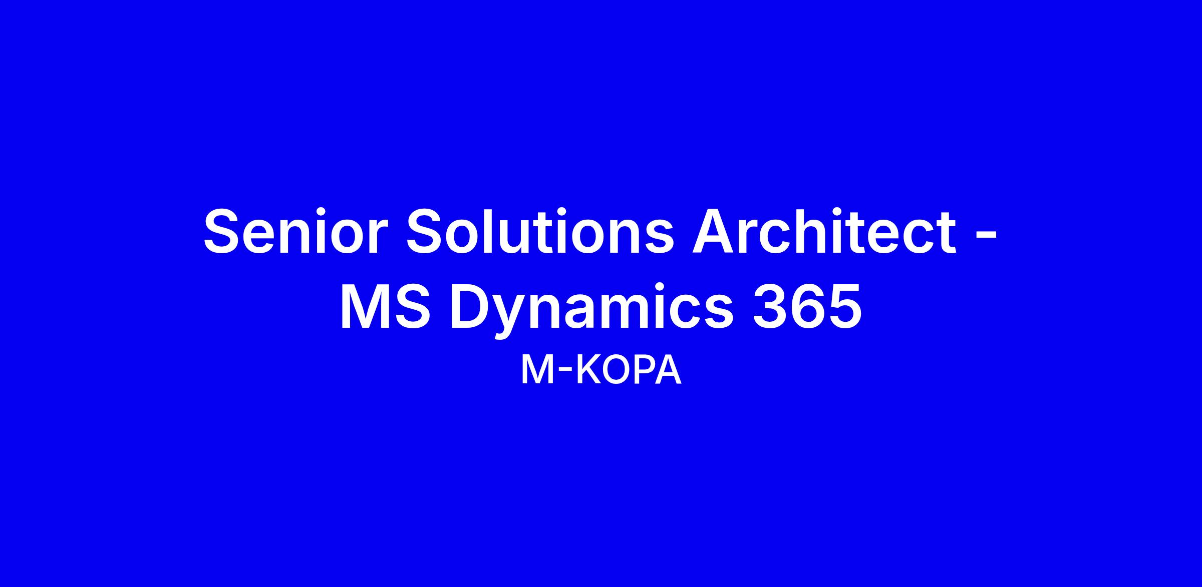 M-KOPA is looking for a Senior Enterprise Solutions Architect - MS Dynamics 365 to design and implement enterprise-grade D365 F&O solutions that digitize and scale warehouse and finance operations across Africa. The role offers end-to-end responsibility from requirements gathering to post-go-live support, with a focus on supply chain and finance modules, and will drive digital transformation through optimization and automation. This is a fully remote role working within UTC-1 through UTC+3, collaborating with cross-functional teams across multiple countries. To apply, highlight 5+ years with D365 F&O, multi-country ERP deployments, strong analytics, and agile experience; include concrete project outcomes, and any MB-300/MB-330 or Power BI experience.