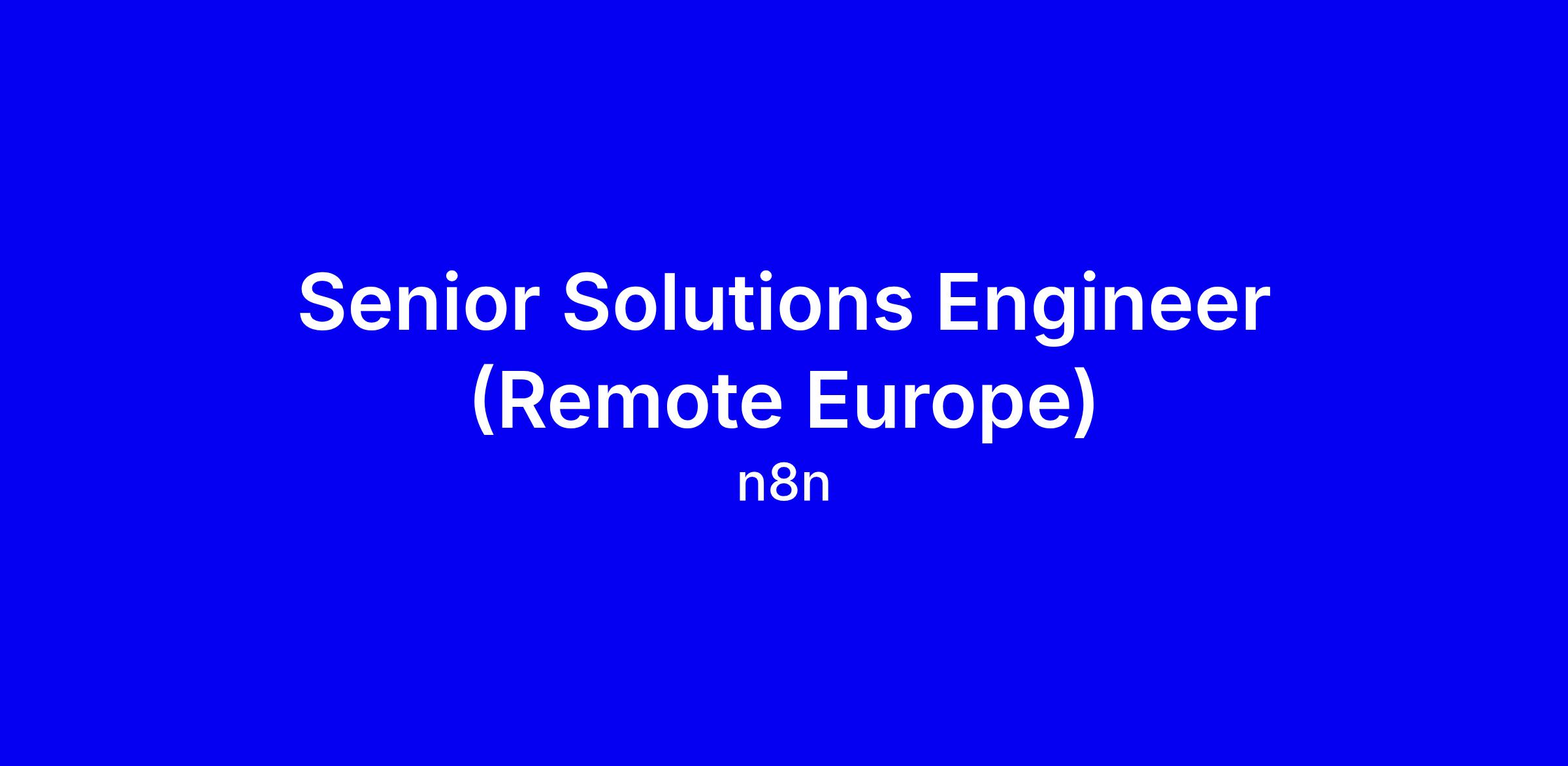 n8n is seeking a Senior Solutions Engineer (Remote Europe) to be the primary technical partner for Enterprise sales, guiding discovery, demos and end-to-end POCs that prove secure, reliable and scalable deployments in complex environments. This customer facing role focuses on technical stakeholders and enterprise use cases, requiring 6+ years in a technical pre sales or sales engineering role, ideally in B2B SaaS, plus strong communication, commercial acumen, and the ability to build relationships with IT and Security teams. Must have API and OAuth experience, JavaScript or Python, Docker/Kubernetes, CI/CD, networking and security, plus cloud knowledge (AWS, GCP or Azure) and a startup mindset. Nice-to-have AI/automation, advanced degree, open source or product familiarity with n8n, and a data driven mindset. Apply with a tailored enterprise POC story and a screenshot of your first workflow on app.n8n.cloud/register, showing how you address security governance and adoption while collaborating with Sales to shape deals.