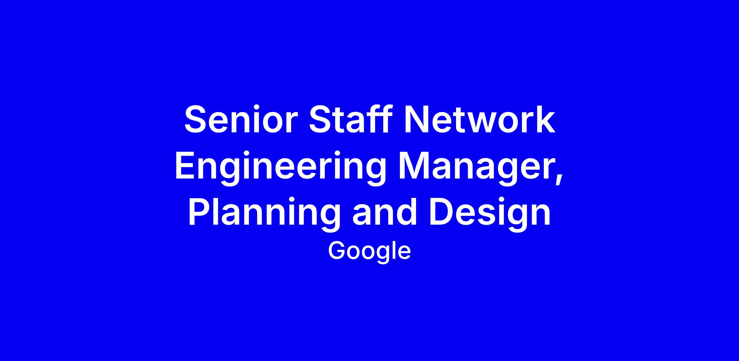 Google is seeking a Senior Staff Network Engineering Manager, Planning and Design in London to lead a team of Network Planners, Engineers and Designers delivering Layer 1 to 3 design across multiple sites. Requirements include 15+ years in network design and troubleshooting with equipment providers, 15+ years in network planning, and 10+ years in people leadership. The role sets direction, drives execution, mitigates risks, and aligns with business, product and technical stakeholders to maintain network reliability at scale. Preferred: CDN, IP transit and peering, dark fiber, optical transport, cloud technologies and strong communication. To apply, show leadership impact, multi-site design wins, cross-functional collaboration, and readiness to work onsite in London.