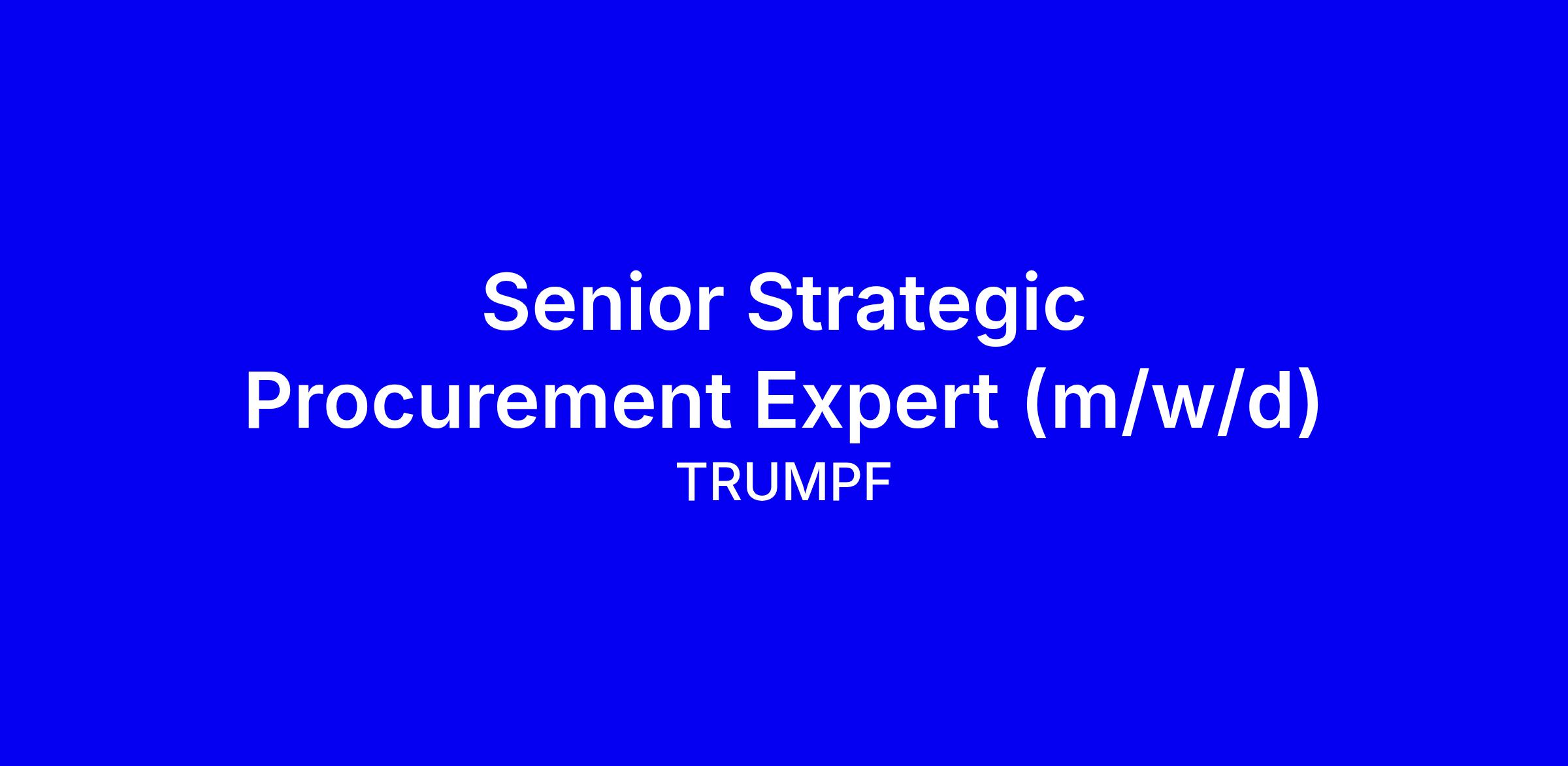 TRUMPF sucht einen Senior Strategic Procurement Expert (m/w/d) für Grüsch, Schweiz, Vollzeit, onsite. Sie gestalten die Warengruppenstrategie, analysieren globale Beschaffungsmärkte, wählen und entwickeln strategische Lieferanten weltweit und arbeiten an Einkaufsprojekten sowie Engpassmanagement mit. Sie sichern die Verfügbarkeit von Produktionsmaterialien für Werkzeugmaschinen, Lasertechnik und Elektrowerkzeuge, betreuen Verlagerungsprojekte und identifizieren Einsparpotenziale entlang der Wertschöpfungskette. Gesucht wird eine Person mit abgeschlossenem Studium der Wirtschaftswissenschaften oder Wirtschaftsingenieurwesens oder technischer kaufmännischer Grundausbildung plus mehrjähriger Einkaufserfahrung, mindestens 5 Jahre im strategischen Einkauf, exzellenten Kommunikations- und Verhandlungsfähigkeiten, analytischem Denken, selbstständiger Arbeitsweise sowie SAP R3 oder S4 HANA Kenntnissen und verlässlichen Deutsch- und Englischkenntnissen. Bewerben Sie sich online und bringen Sie konkrete Beispiele zu Einsparungen, Lieferantenentwicklung und Engpassmanagement mit; Fragen an Kristina Trifunovic.