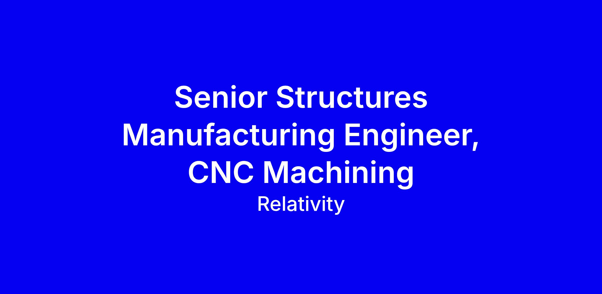 Relativity Space seeks a Senior Structures Manufacturing Engineer for CNC machining in Long Beach, onsite. You’ll own operations on two 3-axis mills and a 20' VTL, drive throughput and partner with design, manufacturing and reliability teams. Duties: creating work instructions and specs, standardizing processes, establishing machining centers with tooling, supporting the shop floor, and delivering DFM feedback through prototypes and builds. Requirements: bachelor’s in engineering, 5+ years, 3D/2D design per ASME Y14.5M, NX preferred, CNC milling and turning, G-code, strong fundamentals. To apply, highlight hands-on impact, cross-functional collaboration, measurable improvements, and NX and G-code proficiency; onsite in Long Beach; compensation $130k-$166k plus equity and benefits.