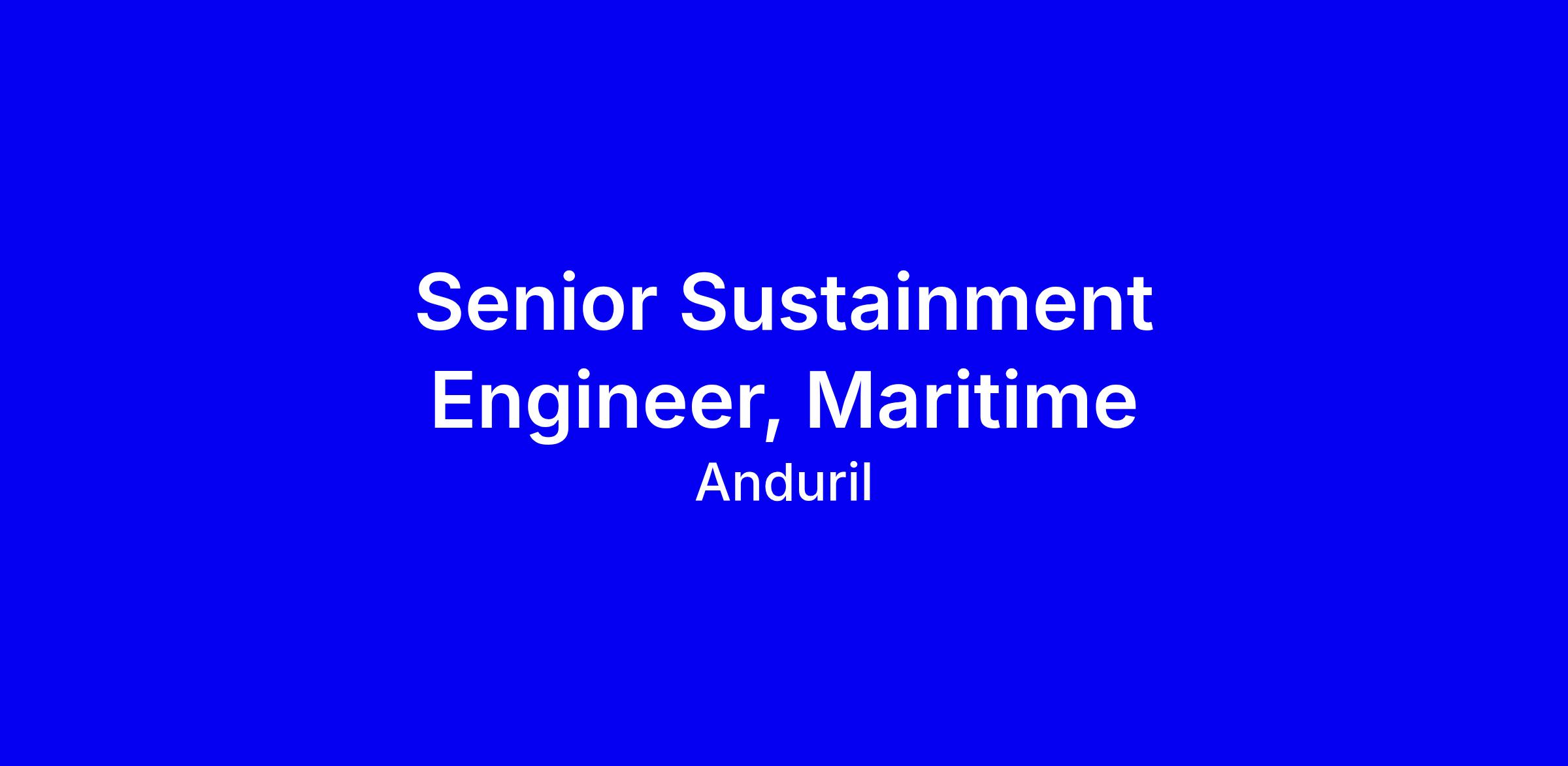 We are looking for a Senior Sustainment Engineer, Maritime, (internally known at Anduril as Product Support Engineer), to join our rapidly growing team in Quincy, MA. In this role, you will own and drive all aspects of sustainment, focusing on maintenance planning, technical data, sparing, and lifecycle management of our Autonomous Underwater Vehicles (AUVs). You will develop and maintain critical sustainment artifacts, ensuring they remain up-to-date and aligned with product evolution. Collaborating closely with engineering, quality, reliability, and operations teams, you will create and execute comprehensive plans that support the long-term reliability and operational readiness of our systems. This role is pivotal in ensuring that Anduril’s AUVs, UUVs, & USVs meet the highest standards of performance and maintainability throughout their lifecycle. From crafting detailed maintenance strategies to managing technical documentation and spare parts planning, your expertise will play a vital role in enabling Anduril’s mission to transform Autonomous Underwater Vehicle operations.