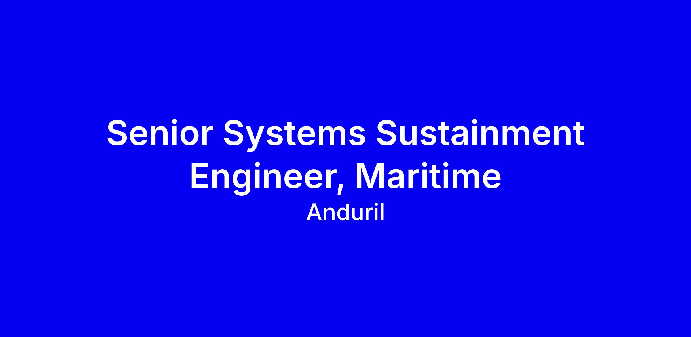 Anduril is hiring a Senior Systems Sustainment Engineer, Maritime in Quincy, MA to own sustainment of AUVs and USVs, developing maintenance plans, managing technical data and spares, and creating a central SBOM while collaborating with engineering, operations, and quality to ensure reliability and readiness across the lifecycle. You’ll be the primary POC for sustainment and help embed sustainment in new product development. Requirements include 5+ years in a high-rigor environment, CAD/PLM proficiency, MIL standards familiarity, strong problem solving and communication, quick learning, and U.S. security clearance eligibility; some travel may be required. Tips: tailor your resume to show measurable uptime gains, cross-functional impact, and concrete SBOMs or maintenance artifacts.