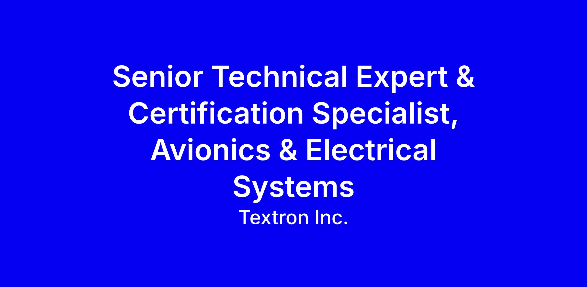 Senior Technical Expert & Certification Specialist, Avionics & Electrical Systems (Job Number: