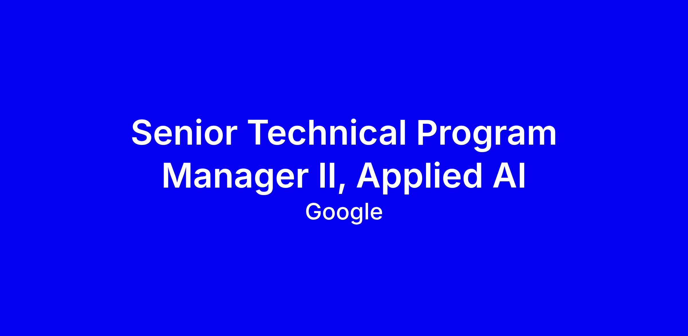 Google seeks a Senior Technical Program Manager II in Applied AI, Waterloo, to serve as the glue moving enterprise customers from pilot to production. You will partner with the DRI to translate complex builds into business outcomes, establish cadence across accounts, and own a Customer Health Hub surfacing metrics. Lead cross-functional reviews with Solution Architecture, Agent Engineering, and Product to drive roadmaps, risk mitigation, and executive reporting. Essentials include a technical degree or equivalent, 10 years in program management, experience with AI Agents and GenAI-native architectures, and customer leadership; cross-functional project management is preferred. Apply with concrete enterprise deployment examples and KPI-driven results; mention dashboards. Canada base salary CAD 240k-246k plus bonus, equity, and benefits.