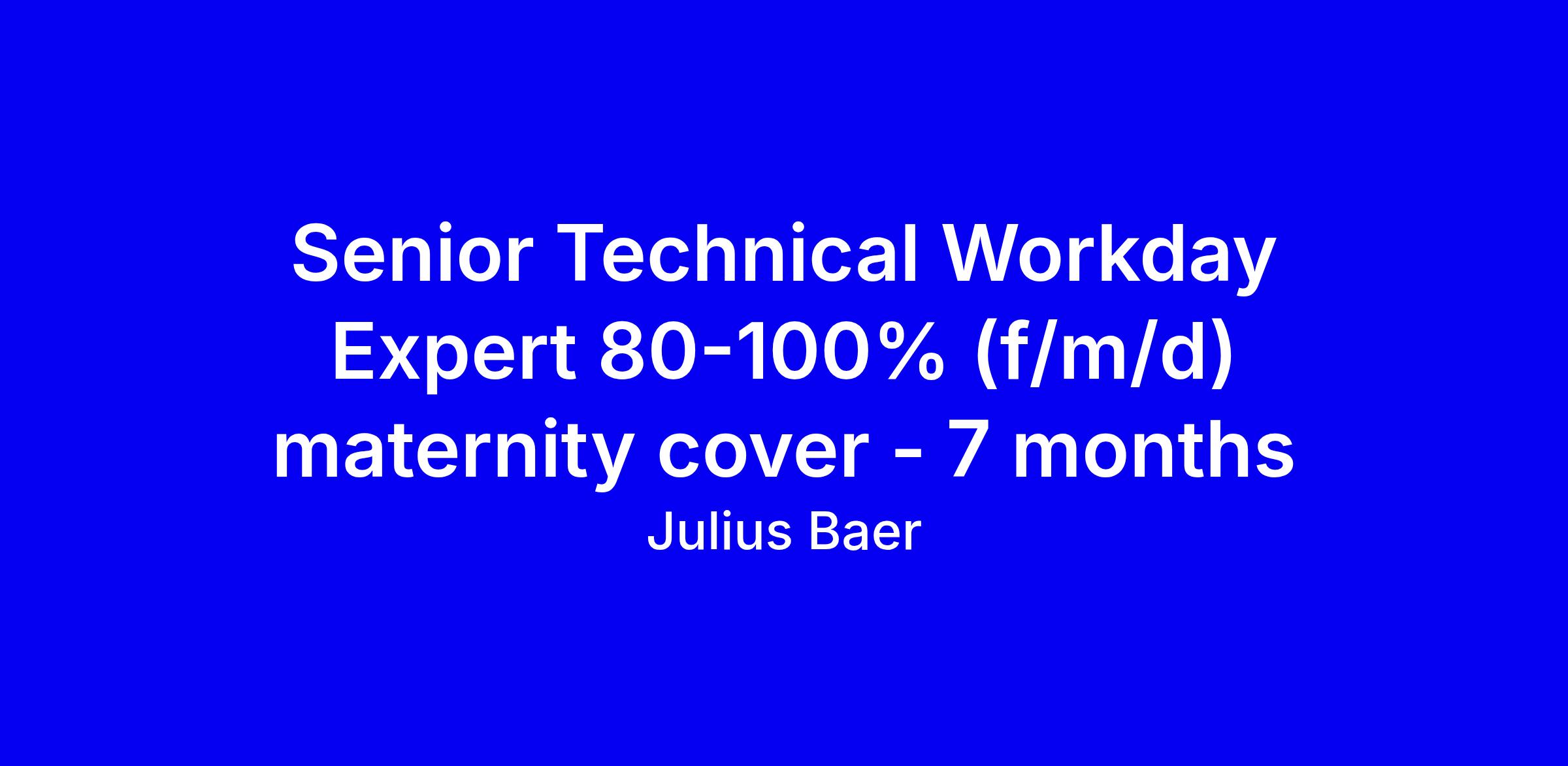 Julius Baer seeks a Senior Technical Workday Expert for a seven month maternity cover, 80-100% onsite in Zurich. The HR Business Technology team maintains the HR tech landscape and data quality. The role is a Workday HCM SME with a cross functional view, advising business SMEs, owning the stability and ongoing configuration of the Workday tenant, and delivering improvements for business and regulatory needs. Required: IT, CS or MIS background and hands-on Workday HCM experience, preferably Core HCM, Talent Management or Security; stakeholder coordination and risk management are essential, a Workday Pro certification is a plus. Apply online with a tailored CV focusing on modules, projects, regulatory awareness, English and Zurich onsite availability.