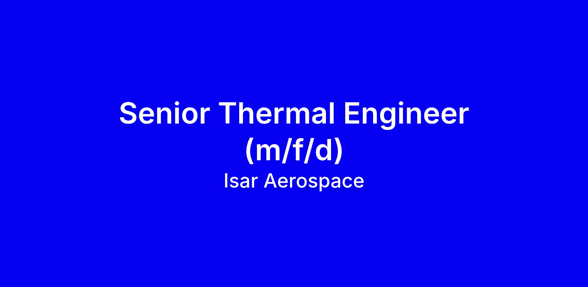 Isar Aerospace is seeking a Senior Thermal Engineer to own vehicle level thermal architecture, lead active and passive thermal control for avionics and payloads, perform coupled loads analyses, and develop FEM, FDM and FVM models tied to flight data. You will develop and correlate models with SIMCenter, STAR-CCM+ and Thermal Desktop, review designs for flight readiness, and create specifications, test plans and procedures while improving workflows. Requirements: degree in aerospace or mechanical engineering, 8+ years in aerospace thermal, experience with ANSYS, SIMCenter, Thermal Desktop, and coding in Python or MATLAB, fluent English. Bonus: ECS design, German. Tips: tailor your CV to show ownership of architecture, quantify impact, cite test data, highlight cross functional collaboration; emphasize onsite Ottobrunn readiness and a passion for space innovation.