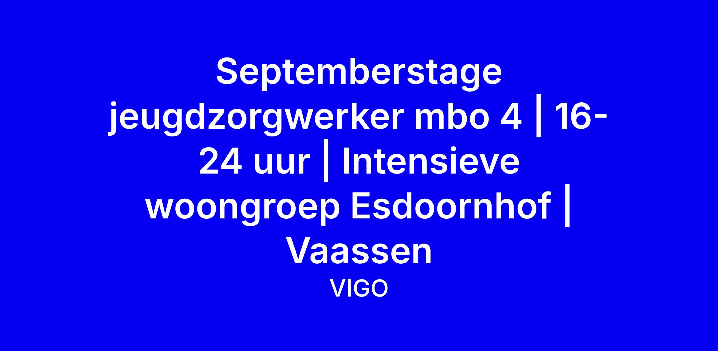 Deze stage bij intensieve woongroep Esdoornhof in Vaassen biedt een waardevolle kans om jongeren die niet thuis kunnen wonen te ondersteunen, met verantwoordelijkheid voor zowel groepsdynamiek als individuele begeleiding, binnen een hecht team van vijf collega’s en een gedragswetenschapper. Je werkt 16-24 uur per week voor 10-12 maanden, start in september 2026, en krijgt begeleiding, een heldere methodiek en de kans om eigen toekomstplannen, werkplannen en evaluaties te schrijven. Belangrijk: in het laatste jaar van een relevante mbo4-opleiding, leeftijd minimaal 20 bij aanvang, leergierig, teamgericht en bereid tot reflectie en feedback, met duidelijke communicatie. Aangetrokken? Neem contact op met Melisa Pala via 06 25 56 32 04 of [email protected], en solliciteer via [email protected]. De CAO Jeugdzorg geldt, en stagevergoeding is €400 per maand bij 32 uur.