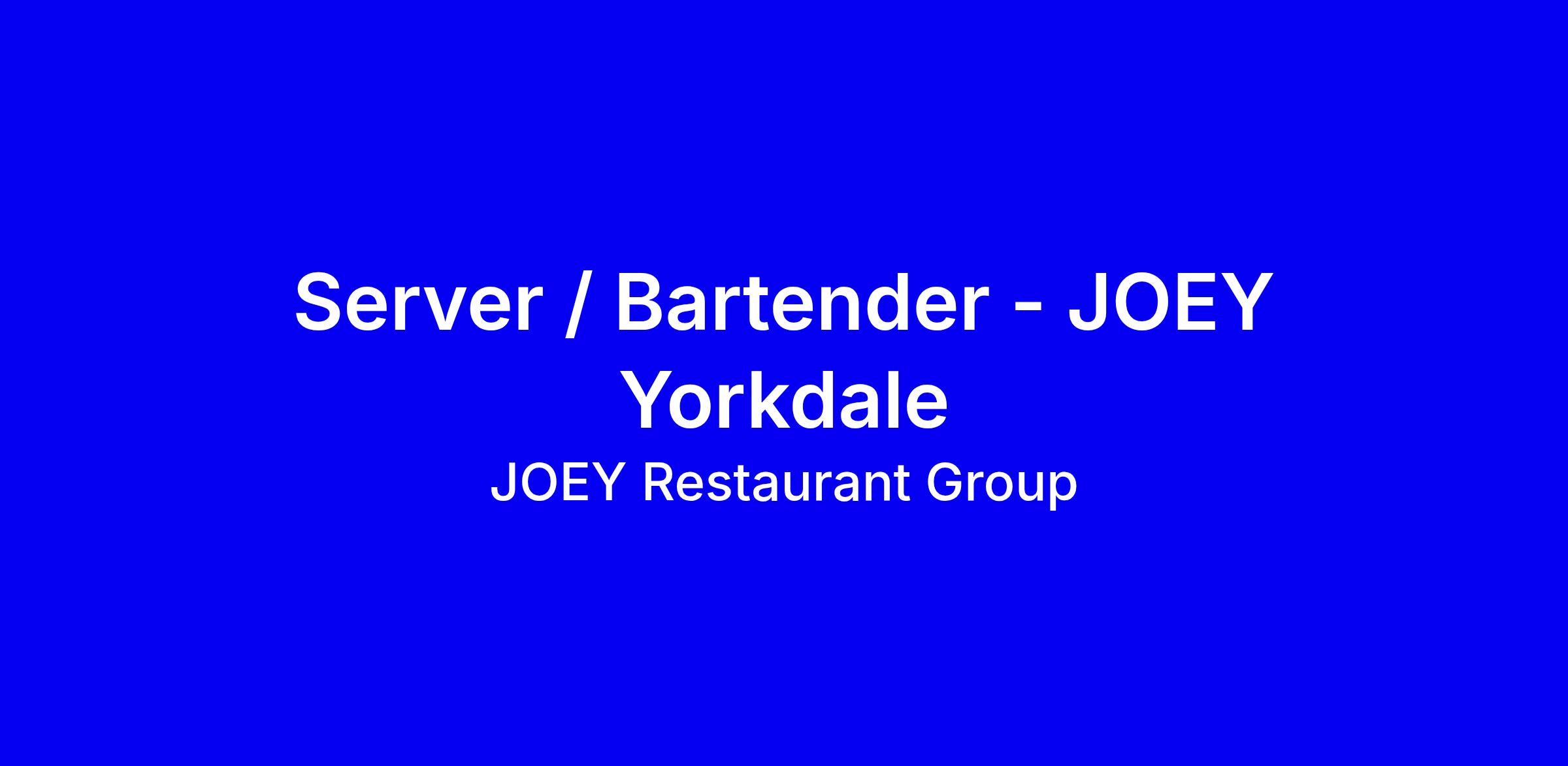 JOEY Restaurants is an Equal Employment Opportunity Employer. We thank all candidates for their time and interest in working at JOEY Restaurants, however, only candidates under consideration for opportunities with JOEY Restaurants will be contacted to participate further in this process.