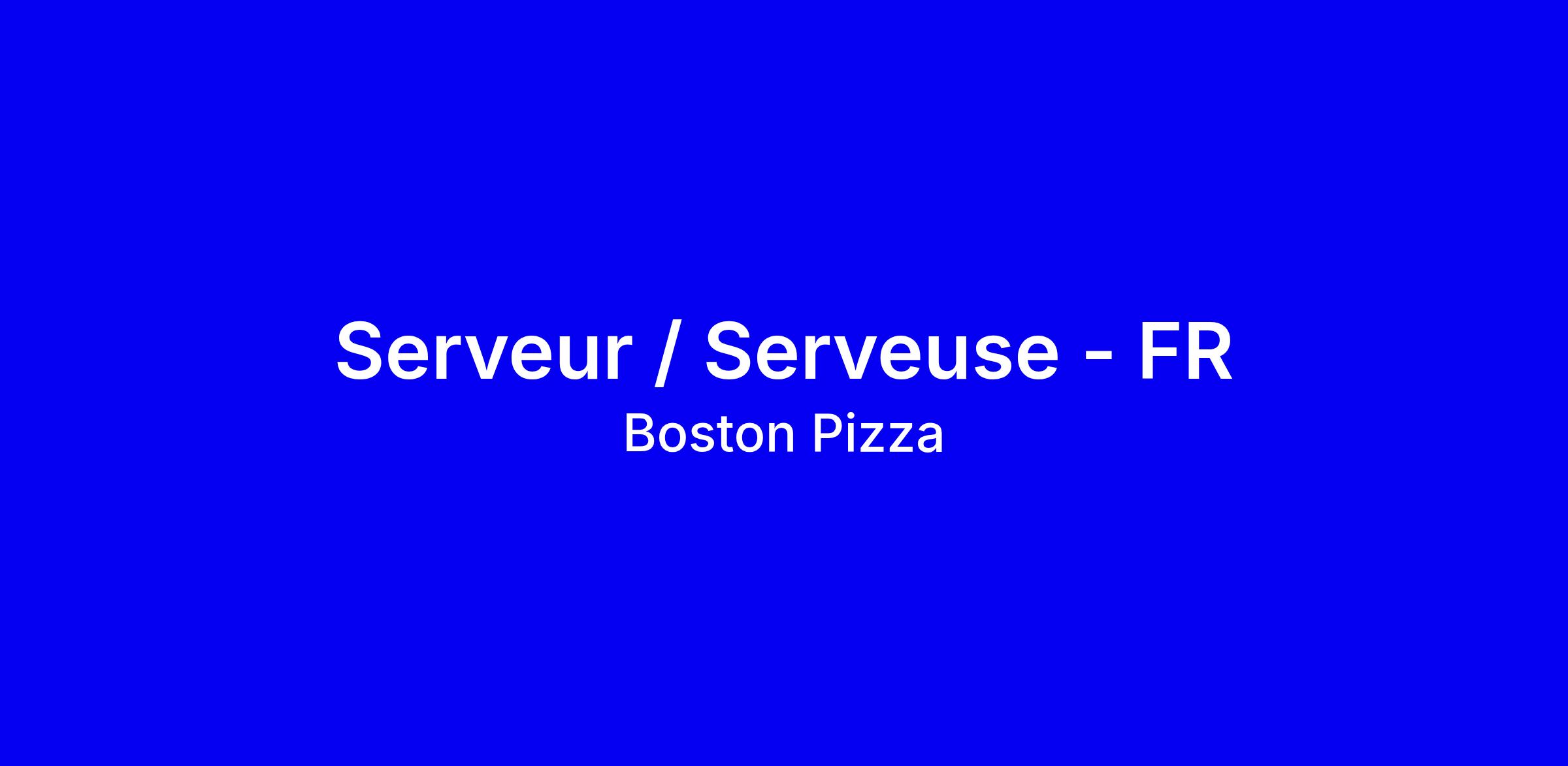Boston Pizza a vu le jour il y a plus de 50 ans, et elle est fière d’être reconnue comme Membre du Club Platine des 50 sociétés les mieux gérées au Canada depuis plus de 20 années de suite. Nous avons à cœur le développement et la croissance des membres de notre équipe et croyons en l’intégrité, la philanthropie et l’innovation. Si vous aimez travailler en équipe auprès du public et que vous souhaitez surpasser les attentes des invités au quotidien, l’emploi qu’il vous faut se trouve chez Boston Pizza.