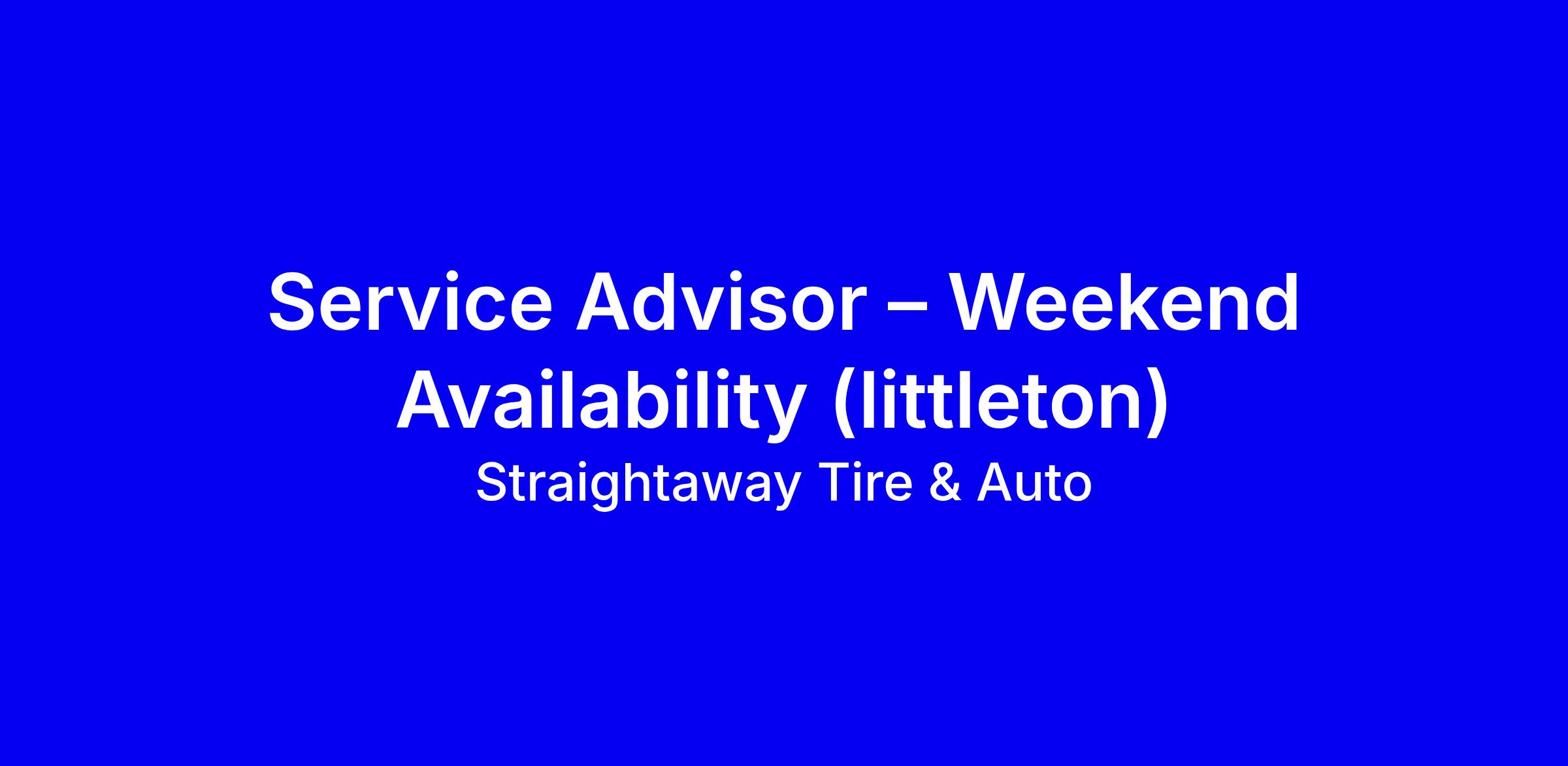 Straightaway Tire & Auto in Littleton is seeking a Service Advisor with weekend availability who can write and sell automotive maintenance services, exude confidence, and win on the phone. The posting stresses a winning attitude over mere skills and offers a culture with a 5-star reputation, growth paths into advisor, trainer, or manager roles, and a chance to partner in a growing business. Compensation ranges from $65k to $95k with commission, plus robust benefits including health, dental, vision, a 401(k) match, paid time off, and affordable employee-only medical. To apply, tailor your resume to show sales and relationship-building success, highlight weekend availability, and call Colton at 720-780-3238 if you’re a top performer.