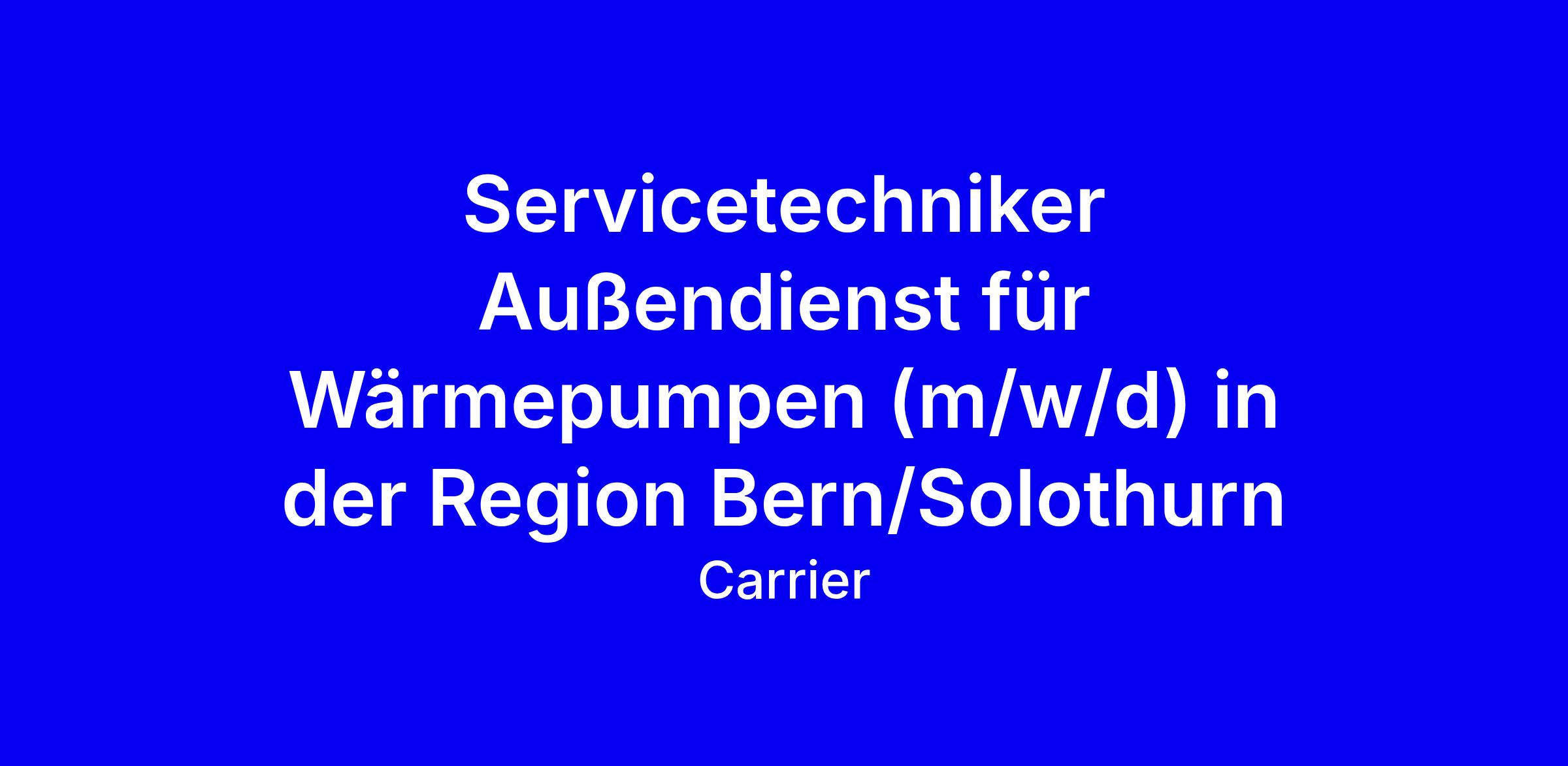 Erneuerbare Energien sind heute so wichtig wie nie zuvor: Und damit rückt die Wärmepumpe weiter in den Fokus. In Ihrer Rolle als Servicetechniker Außendienst für Wärmepumpen (m/w/d) in der Region Bern/Solothurn tragen Sie maßgeblich dazu bei, nachhaltige Energielösungen nach vorne zu treiben. Mit Ihrer Expertise und technischem Geschick nehmen Sie unsere Wärmepumpen in Betrieb und übernehmen die Wartung und Störungsbehebung