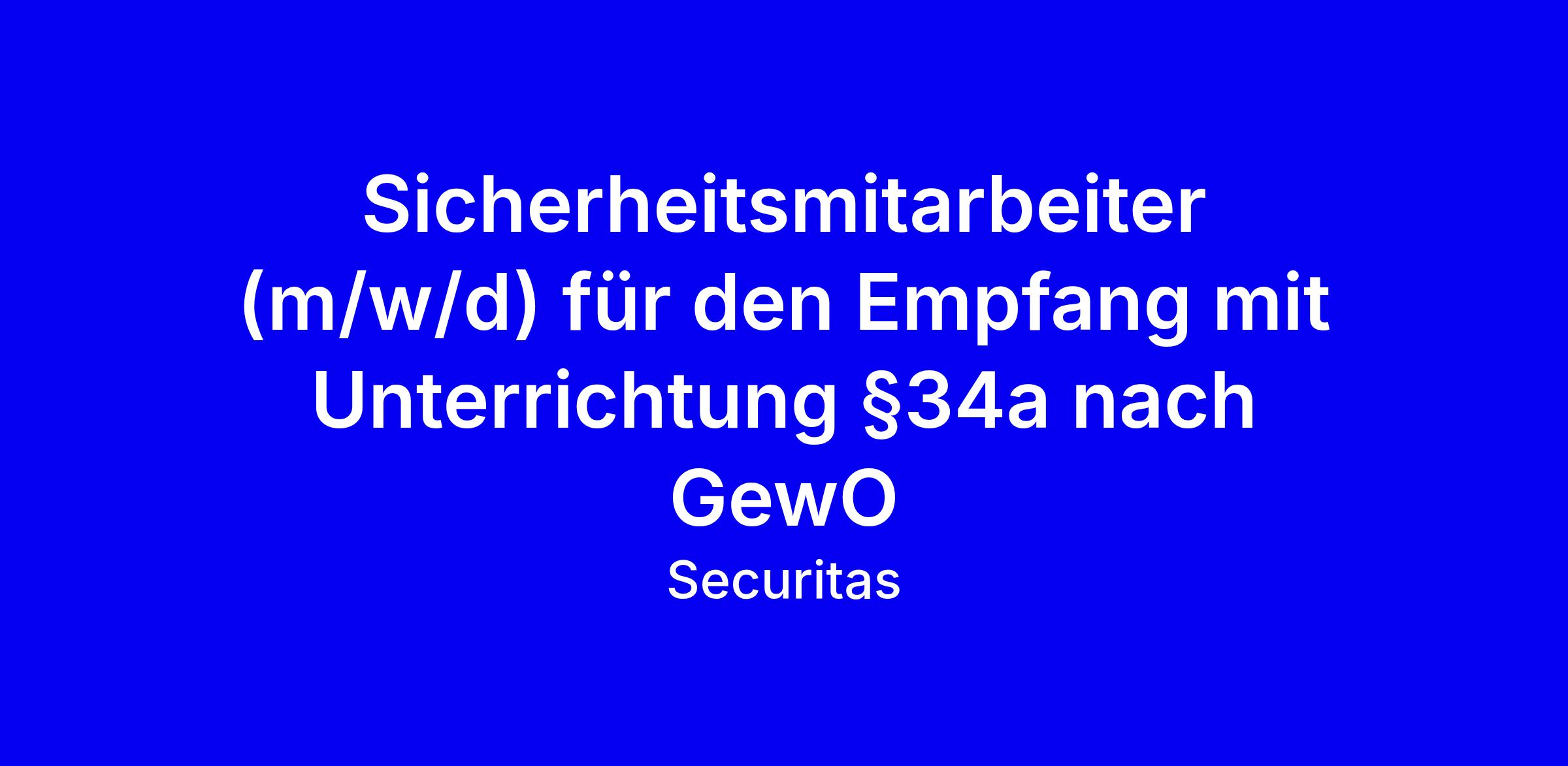 Für unseren Kunden suchen wir einen Empfangsmitarbeiter (m/w/d) mit Unterrichtung §34a nach GewO am Standort Stuttgart