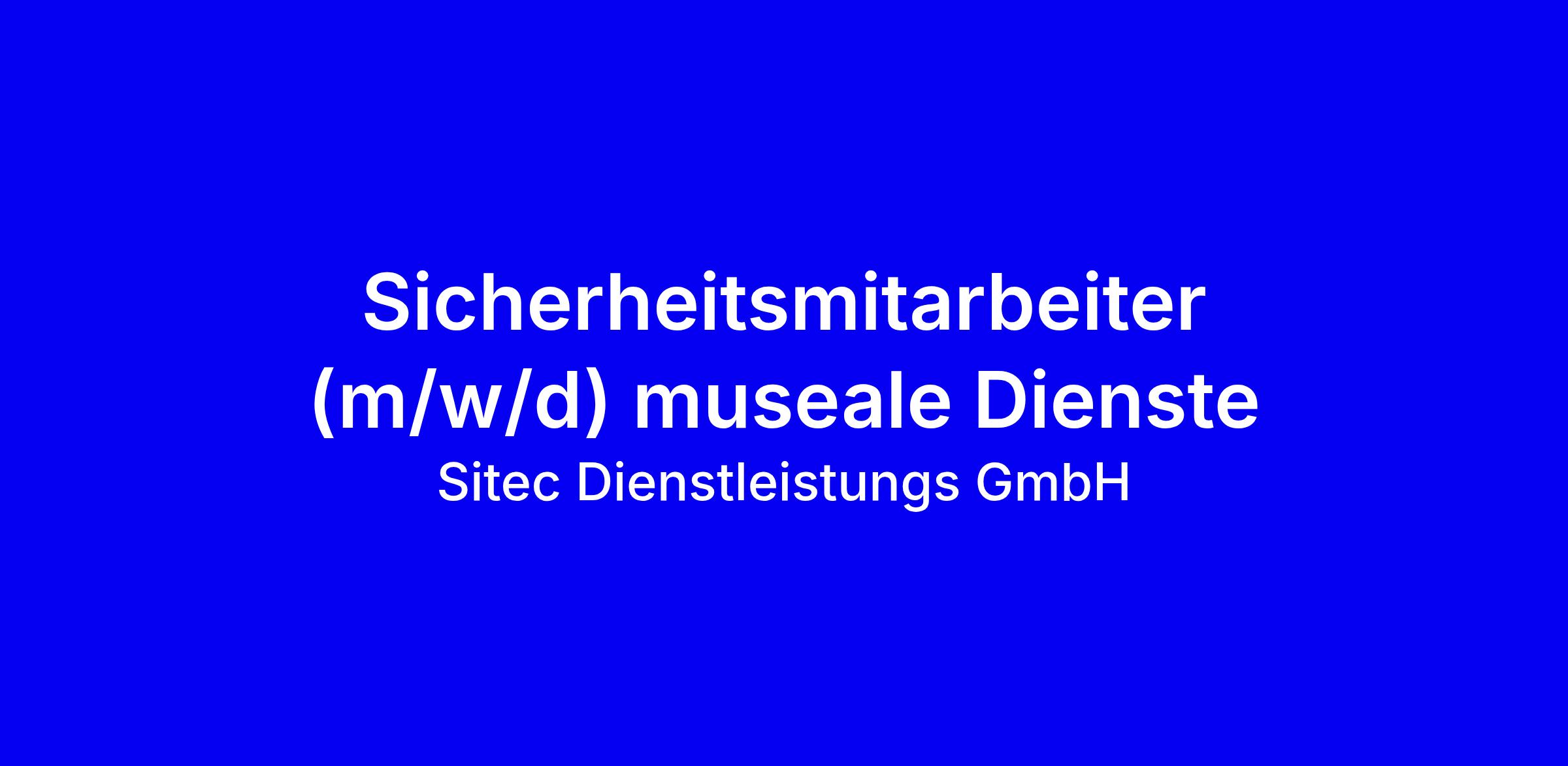 Die Sitec Dienstleistungs GmbH ist ein familiengeführtes, expandierendes Unternehmen mit mehreren Standorten deutschlandweit und gehört zu den führenden Anbietern professioneller Sicherheitslösungen. Zur Verstärkung unseres Teams suchen wir ab sofort zuverlässige Sicherheitskräfte / Aufsichten (m/w/d) für den Einsatz in kulturellen Einrichtungen im Raum Bedburg-Hau