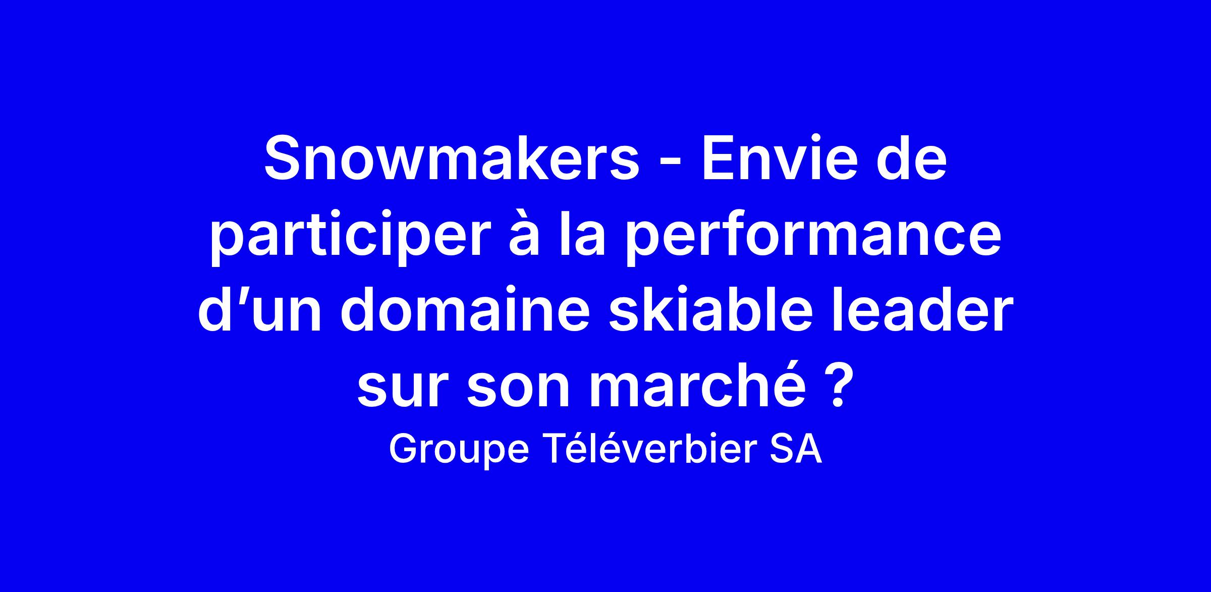 Snowmakers - Envie de participer à la performance d’un domaine skiable leader sur son marché ?