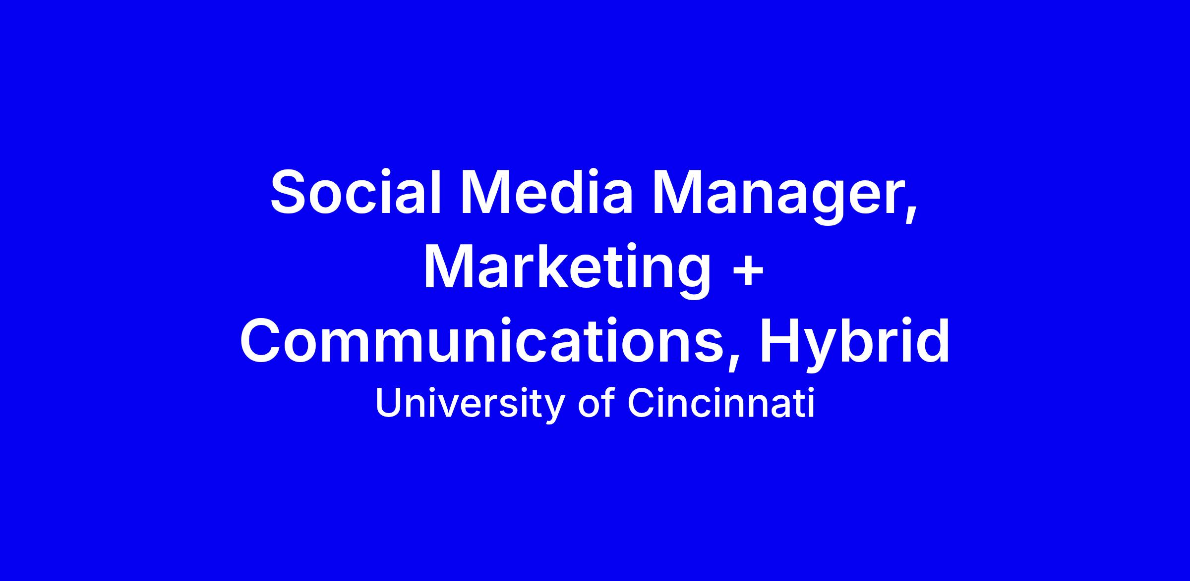 University of Cincinnati seeks a Social Media Manager to own the strategy for the official @uofcincy channels, turning awareness into measurable action across UC’s 700,000 followers. You will lead strategy and daily execution, create action-driving content for prospective students, employers and partners, strengthen the brand, monitor interactions, stay ahead of trends, and establish ROI frameworks with weekly and campaign reporting. You’ll coordinate campus-wide efforts with Marketing + Communications, Enrollment Management and senior leadership for events, ensure ADA compliance, and mentor Co-op 2.0 students. Requirements: bachelor’s degree, seven years of related education/experience and at least three years in social media. Hybrid or remote in OH/IN/KY; salary up to $65,000; apply via the UC applicant portal, internal applicants via SuccessFactors; bring a portfolio of ROI case studies; UC is an E-Verify employer.