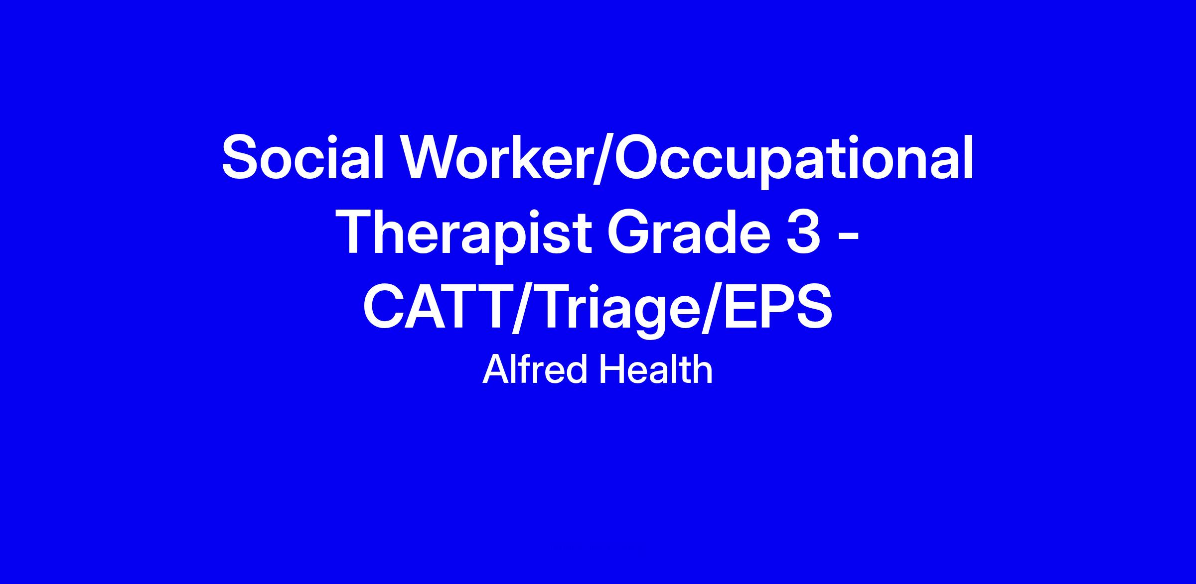 Alfred Health is seeking a Social Worker or Occupational Therapist Grade 3 to join the Crisis Assessment Team, Triage, Emergency Psychiatry and APACER at The Alfred in Melbourne’s inner south east. This permanent role is available as full time or part time (64 or 80 hours plus ADO negotiable) with a seven day rotating roster including night duties and negotiable non clinical days for development. You’ll have an approved social work degree or OT registration with at least five years post graduate mental health experience, plus drug and alcohol exposure and relevant post graduate study. The role emphasizes cross stream work across four services and strong supervision. Apply via the Apply button with your resume and cover letter; inquiries to Chris McKenna or Lisa McKenzie or email [email protected]. Alfred Health is an equal opportunity employer and vaccination requirements apply.