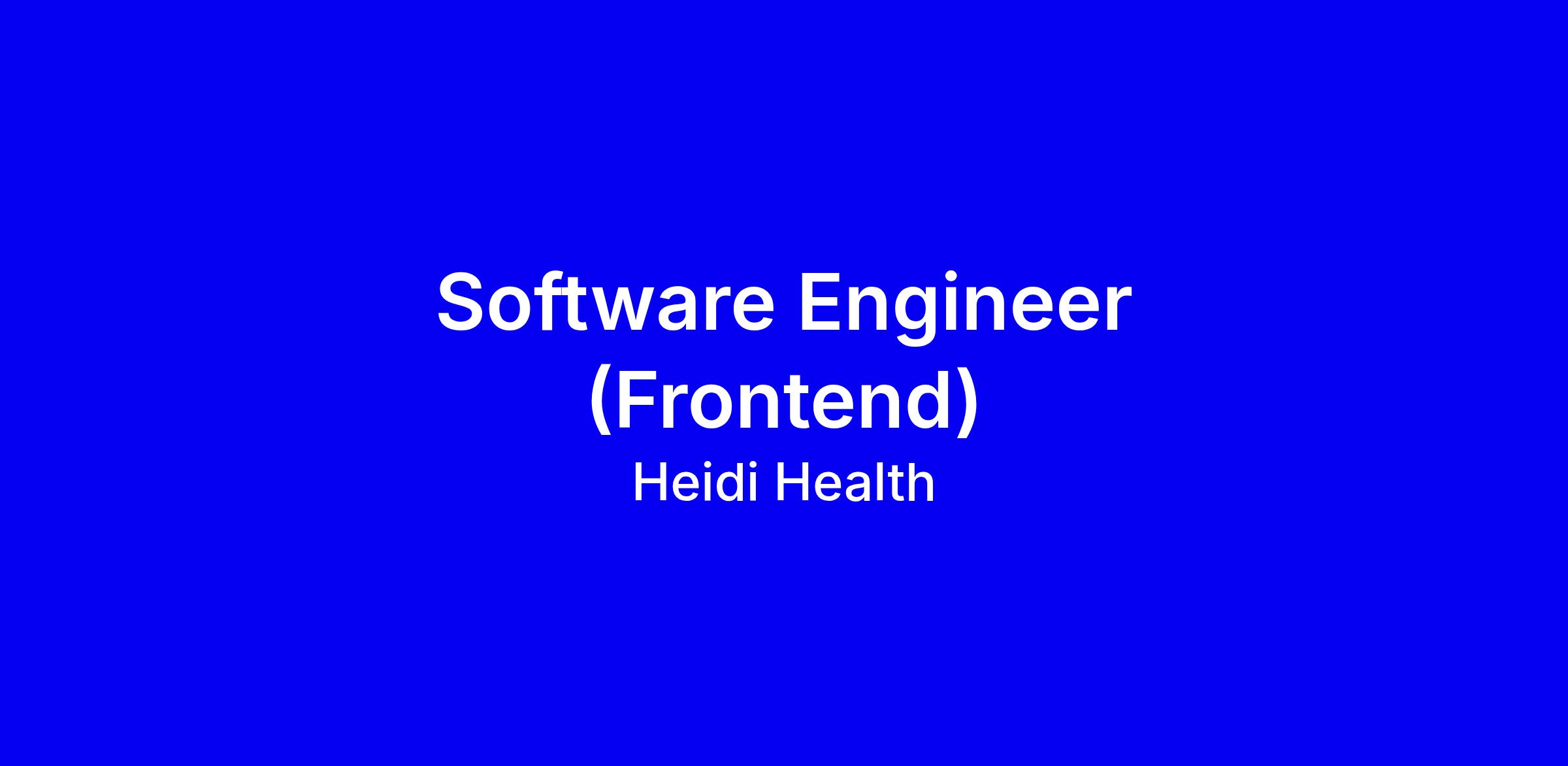 Heidi Health is seeking a Frontend Software Engineer to be the frontend expert, shaping scalable interfaces for Heidi AI products and collaborating with product, design and backend teams. You’ll thrive in a SaaS startup, turning designs into features while coding alongside other engineers. Requirements include 3 to 10 years in a SaaS, a portfolio of responsive web and mobile interfaces, and expertise in React, React Query, Next.js and Typescript, with React Native a bonus. Apply with a portfolio showing end to end delivery, collaboration, performance and accessibility, and align with Build to Last, Own Your Practice, Move Fast Stay Steady and Make Others Better; we offer a flexible hybrid setup, development budget, and potential equity.
